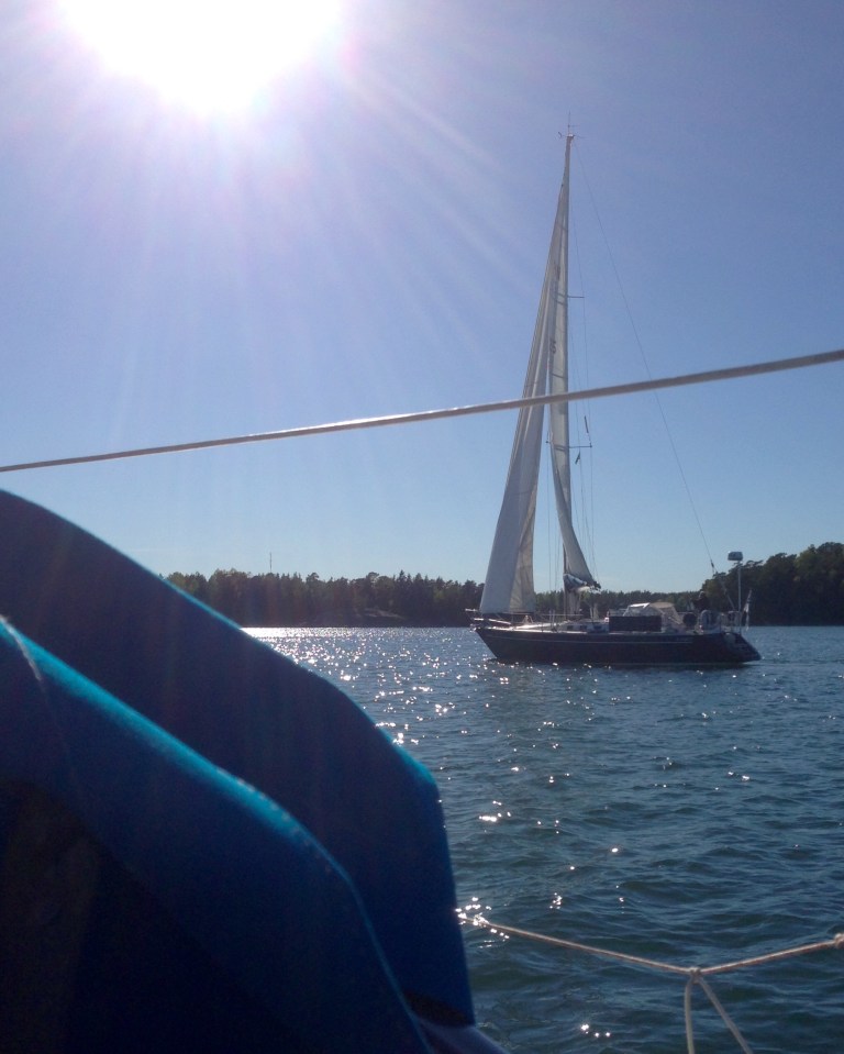 Efter Barösund blir vi omseglade av den enda andra segelbåt vi såg..