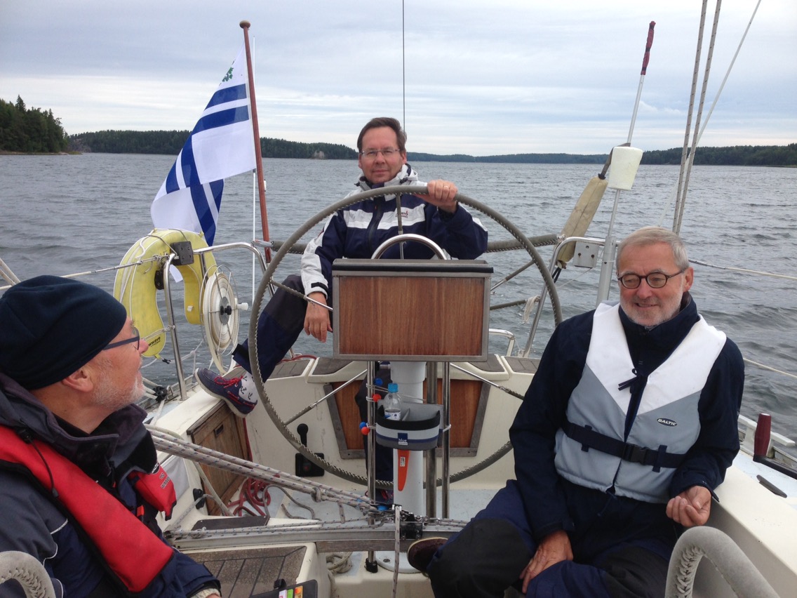 Besättningen och skepparen är nöjda. Vinden är lätt men båten gör god fart. Vi går mot den östra sidan av Bromarf där det inte finns några egentliga gästbryggor. (Det lär det inte finnas i västra hamnen heller, den skall rivas och byggas om)