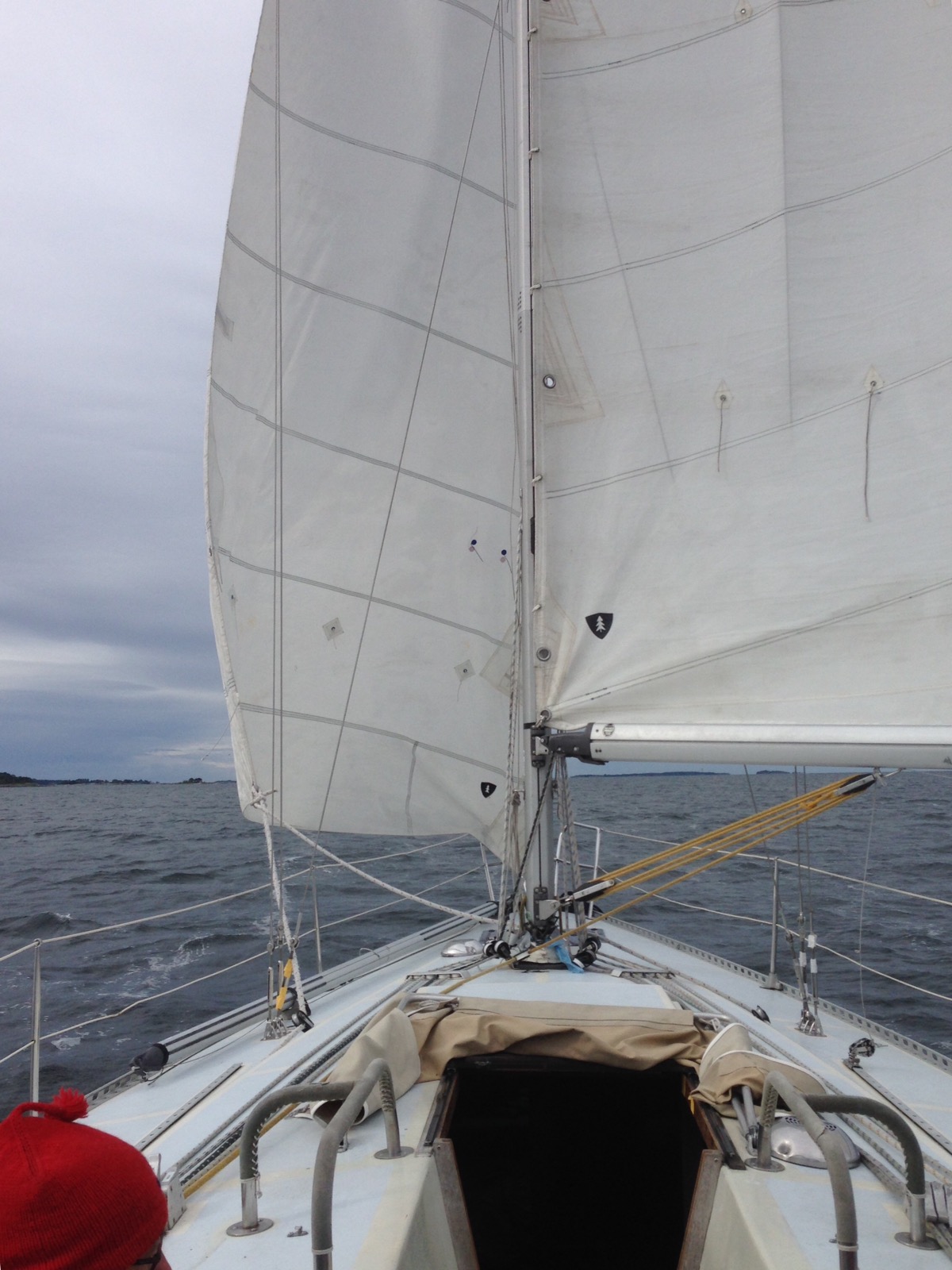 På morgonen kastar vi loss. Adaptern blir kvar i elstolpen i hastigheten. Nu har vinden vridit och blivit nordlig. D.v.s. kryss igen.