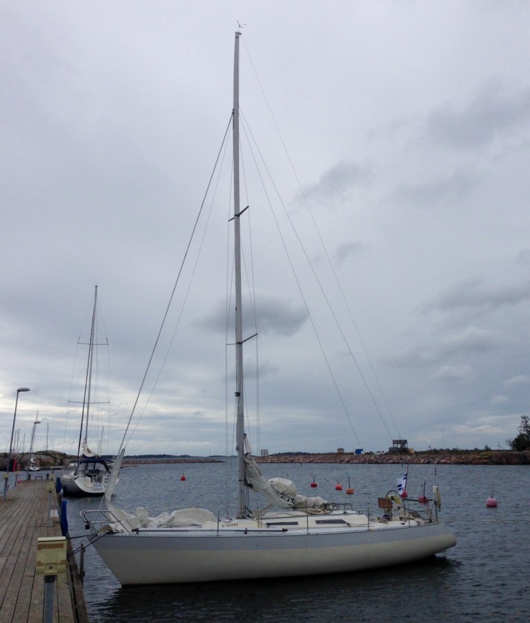 Nu, måndag, sitter jag ombord och skriver dessa rader. Försökte hyra cykel, men allt är stängt för säsongen, så jag gick till Hangöby hamn efter adaptern som satt kvar i stolpen. Rapporterna anger 28 m/s på Tulludden. På onsdagen lär det lätta..