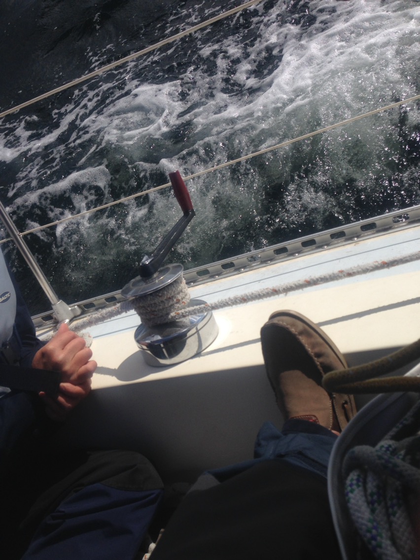 Darling Lilly går fint genom sjön. Stundvis får vi göra stagvändningar tätt. Gasten får jobba hårt medan rorsman har det lättare. Vi byter plats utanför Helsingfors. Målet för dagen får bli Porkala Marin. Butiken har stängt, men bastun är varm. Jag tillreder en pestopasta med makrill innan vi badar bastu och kryper till kojs.