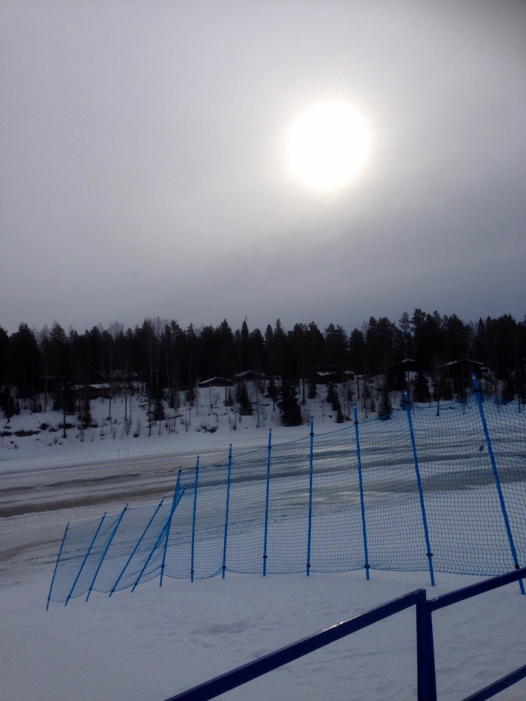 Nu gäller det att prestera. Värmen håller i sig och backen är mjuk. Jag lyckas koncentrera mig och får till ett hyggligt åk. Konkurrenten Rafu tappar skidan och är ute ur leken, men Järä är nästan två sekunder snabbare än jag i det första åket. Jaska och Kricke ligger strax bakom mig.