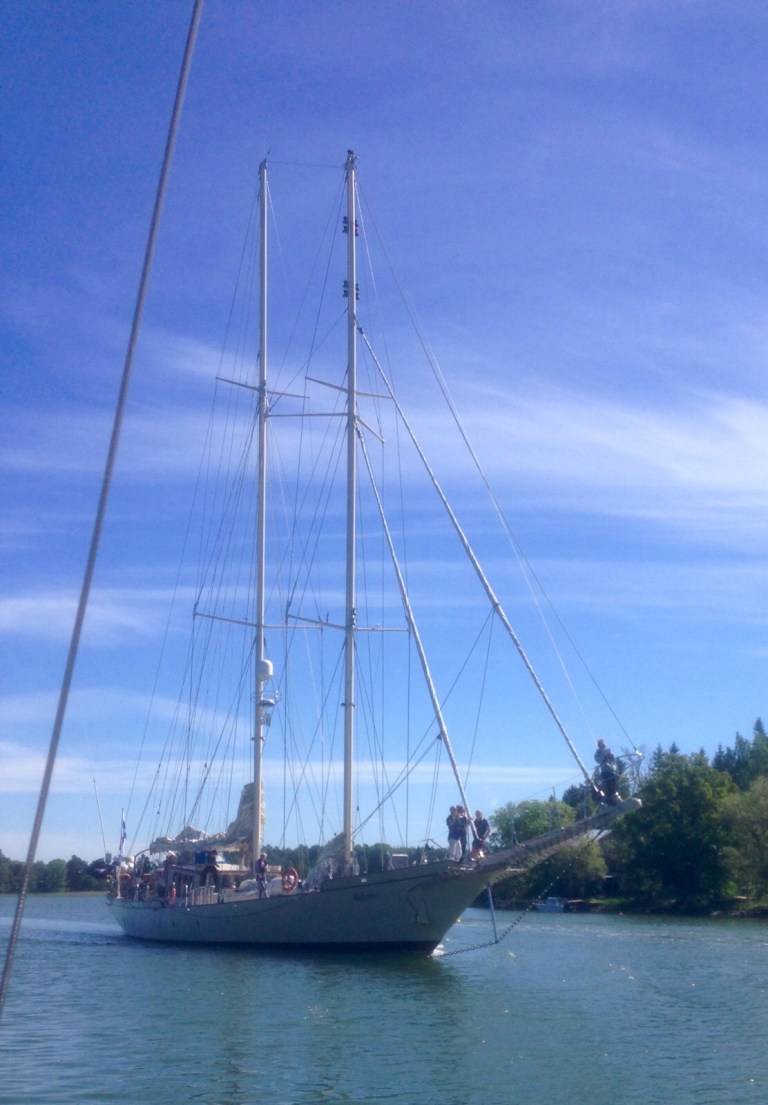 Seglade med spirad genua genom Barösund. Blev omkörd av skolskeppet Helena som gick för motor. De gav mig tumme upp.
