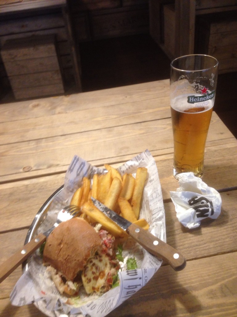 Jag promenerar till centrum. Det duggar lätt medan jag går, men när jag hittat till city öser det ned. Sökande kultur ger jag upp och viker in hos Niska för att få omväxling i dieten.