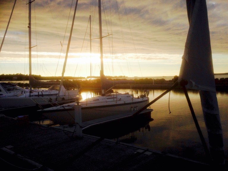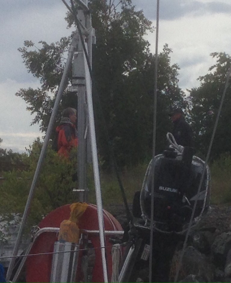 Vädret är inte det bästa; regn och dimma. Mottagningen är dock trevlig, kollegan Kristiina med familj och vänner möter oss på bryggan och besöker Freja.