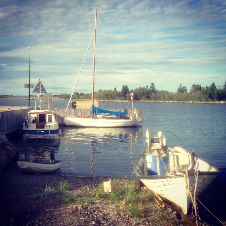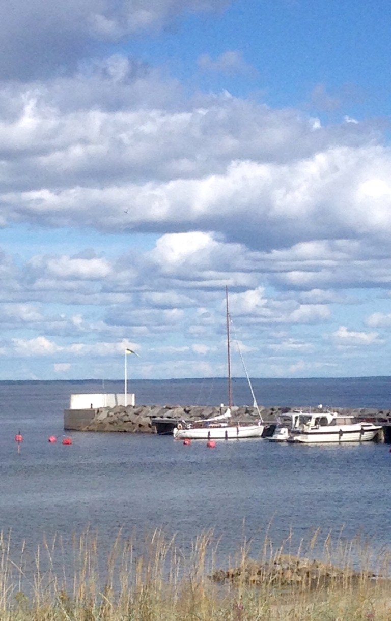 Det var stekhett igen. Jag doppade mig innan jag åkte vidare. Vinden hade vridit till sydväst och ökat, jag kryssade mot Norrgadden som Antti hade rekommenderat. Plötsligt dog vinden ut. Jag tog ned seglen och startade Nanni, motorn. Efter en stund började det blåsa från väster, men jag var så nära målet att jag bara rullade ut genuan som hjälp. Infarten till Norrgadden är besvärlig och utmärks med enslinjer. En segelbåt kom emot i den trängsta passagen och i hamnen fanns en motorbåt med ett äldre par som vänligen flyttade på sig så jag fick plats i lä av bryggan. Det lovas nämligen nordliga vindar till natten.