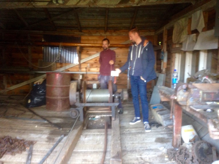 Till slut får vi in henne och upprätad med hjälp av en domkraft.