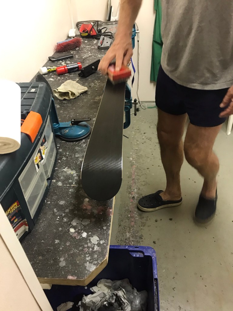 Seppo, Jaska o Rafu har sällat sig till vårt logement. Medan de går ut för att träna fixar vi våra skidor.