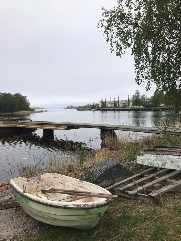 Det regnar i Helsingfors och det regnar i Bennäs. Det blir att dra på regnbyxorna och peda mot Jakobstad. Det känns som motlut fast det inte borde. Lite proviantering före incheckning på Westerlunds Inn.