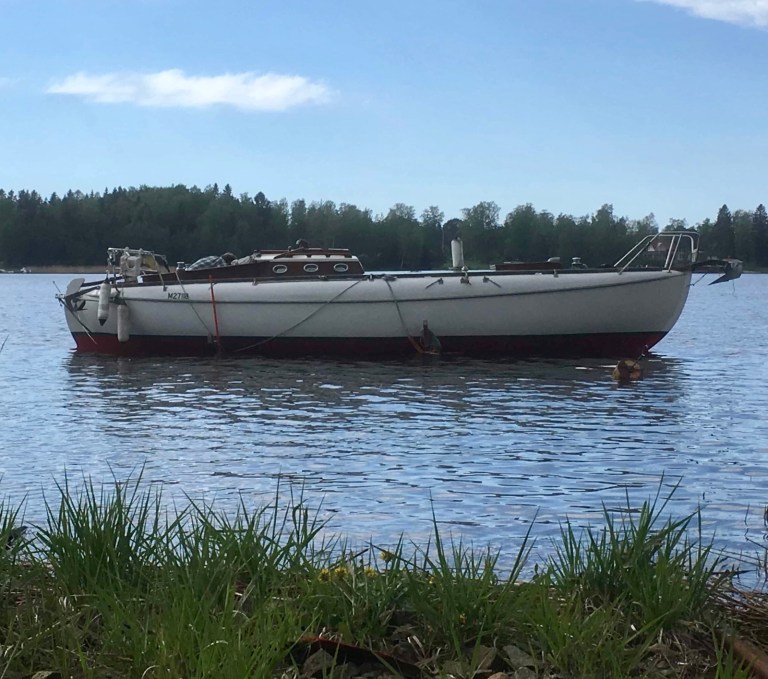 Så stundar då dagen. Johan och jag fäster allt vi hinner på däck, ventiler, knapar, värmarens skorsten, ankarkättingens rör, beslag. Jag tycker ändå att vi kan lämna onödiga skotskenor som jag inte använder.