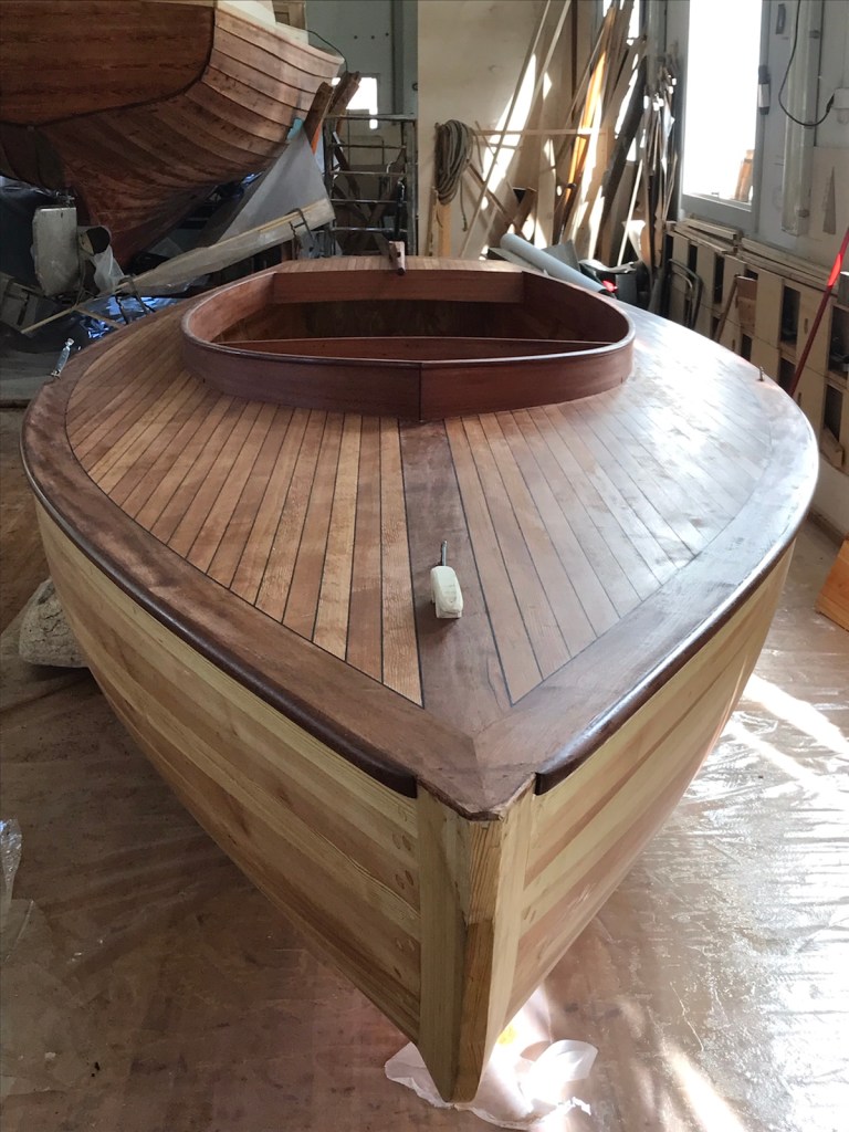 Jag slipar förstrött på peket, förluckan och skjutluckans garage tills jag inte orkar längre utan går till Fredrik efter lack. Planlöst penslar jag runt, bogsprötet som jag preparerat ordentligt blir bra, resten hastverk. Nästa år gör jag allting ordentligt har blivit mitt mantra.