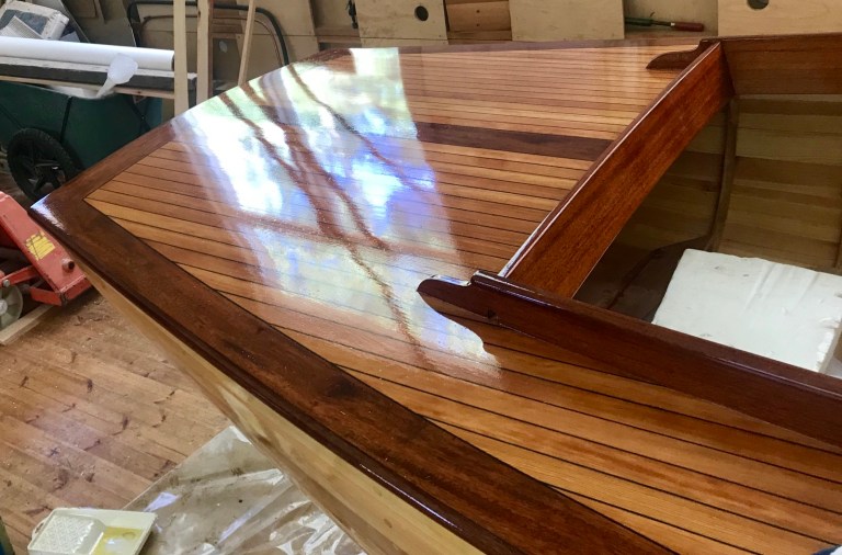 Efter lunch börjar jag lacka. Masten ser bra ut efter att ha renskrapats för ett par år sedan, men för att hålla lystern lönar det sig att lägga ett lager till varje år.
