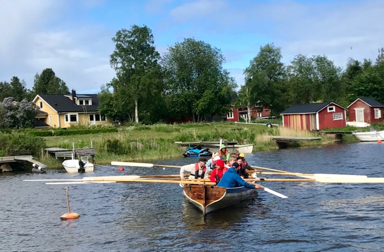 Johan tar sig an ett gäng ungdomar som han skall lära att bemästra roddbåten med tio åror. Det ser knepigt ut i början men snart försvinner de mot den rätt kraftiga nordliga vinden. Båten lär också segla bra, med tre segel kan den logga över 10 knop i postrodden.