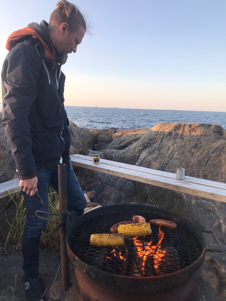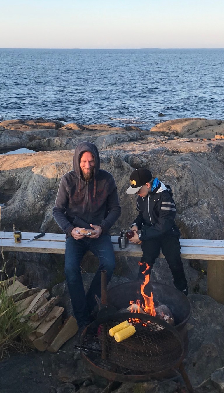 We grill corn and sausage by the campfire before we go to bed. It has been an exciting day!