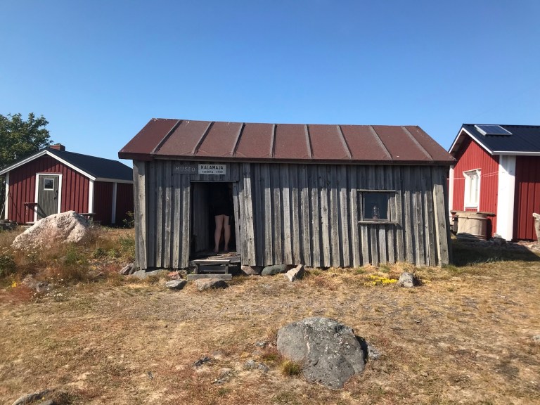 Ön är full av små fiskebodar med sommargäster. Det finns också en kyrka.