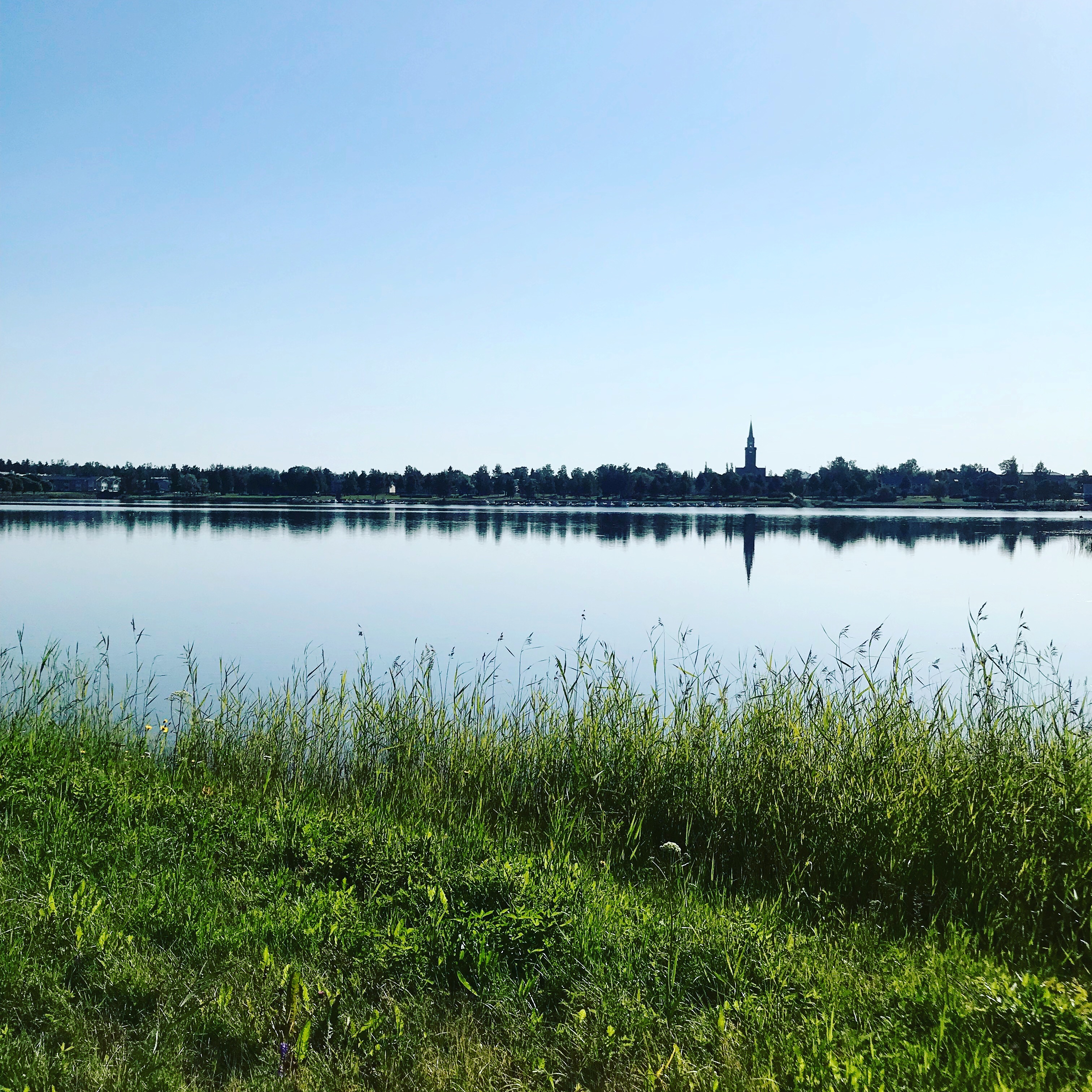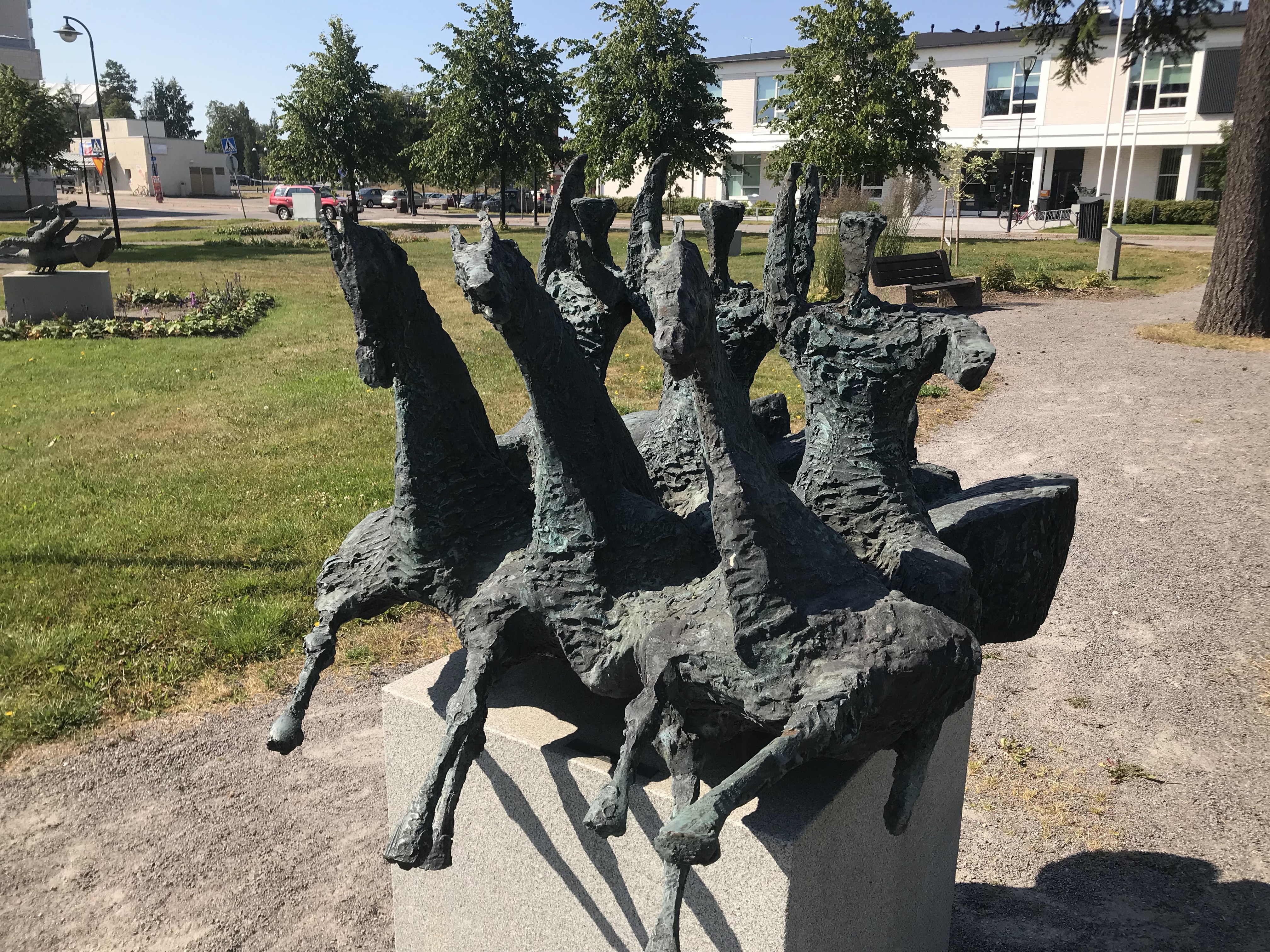 Jag packar alltså ihop mina pinaler (mest smutstvätt) och börjar promenera den drygt kilometerlånga sträckan till centrum. Det är stekande hett, jag tar av mig t-skjortan, sätter mig på en parkbänk på ett skuggigt ställe och går till stranden för att skölja armhålor och änne. Väl i centrum klär jag mig anständigt. Jag söker upp vitala ställen; museum, turistbyrå, butik och busstation. När jag har koll går jag först till Lidl med tomflaskor som jag släpat med mig och inhandlar en full i stället. Jag har köpt en tågbiljett från Vihanti till Böle, men det visar sig att det inte går någon buss till Vihanti den tiden under sommaren. Jag frågar på taxistationen och får beskedet att resan kostar ca 70 €. Jag kommer till slutsatsen att det enda jag kan göra är att ta en buss till Uleåborg och ta tåget därifrån. På turistbyrån bekräftar de att så är fallet. (Jag gjorde en kanske inte så lyckad entré genom att som inledningsfråga yttra ”miten täältä pääsee pois?”, hur kommer man bort härifrån?)