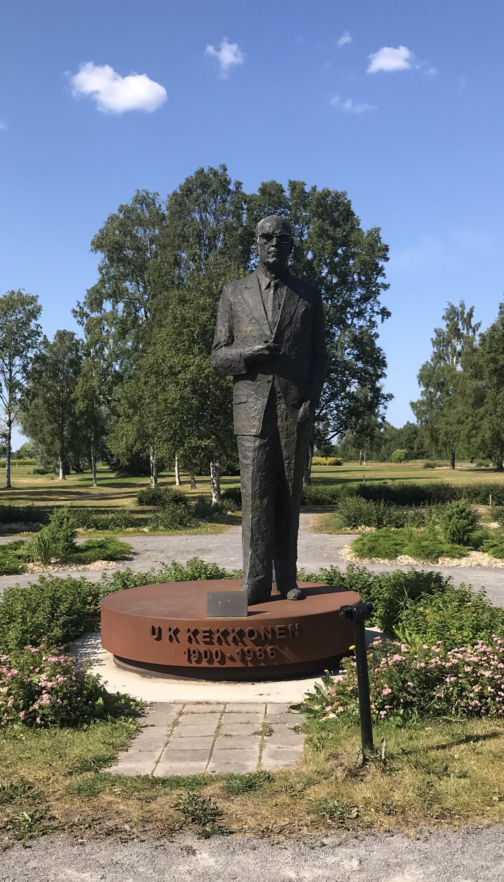Tyvärr glömde jag att fotografera Per Brahe så det fick bli Kekkonen i stället. Efter att ha passerat ett antal pizzerior och tex-mex-ställen hittar jag ett lokalt café där det serveras fisksoppa, sallad, bröd, kaffe och efterrätt för 8 €. Mums! Därefter beger jag mig till busstationen där jag låst in min väska i ett skåp medan jag var ute på sta´n. Det börjar samla sig folk, det verkar lovande, kanske det kommer en buss till den annars helt öde platsen. Och visst kommer den och för oss i förtid till bussterminalen i Uleåborg som ligger alldeles intill tågstationen. På perrongen samlar sig massor av människor. Det meddelas först att tåget är 10 minuter försenat, sedan 10 minuter till. Härefter kommer ett frågetecken och det förkunnas att förberedelserna tar en okänd tid. Efter tre kvart rullar tåget äntligen in framför ett annat tåg som tydligen är på väg åt andra hållet. Vi kommer iväg och tar in på förseningen så att när vi är i Böle hinner jag se U-tåget rulla in på perrongen bredvid, men hinner inte springa uppför trapporna i folkträngseln och ner på andra sidan innan tåget åker. Det blir att vänta en halv timme på nästa tåg..
