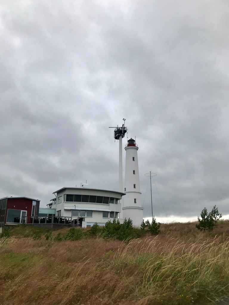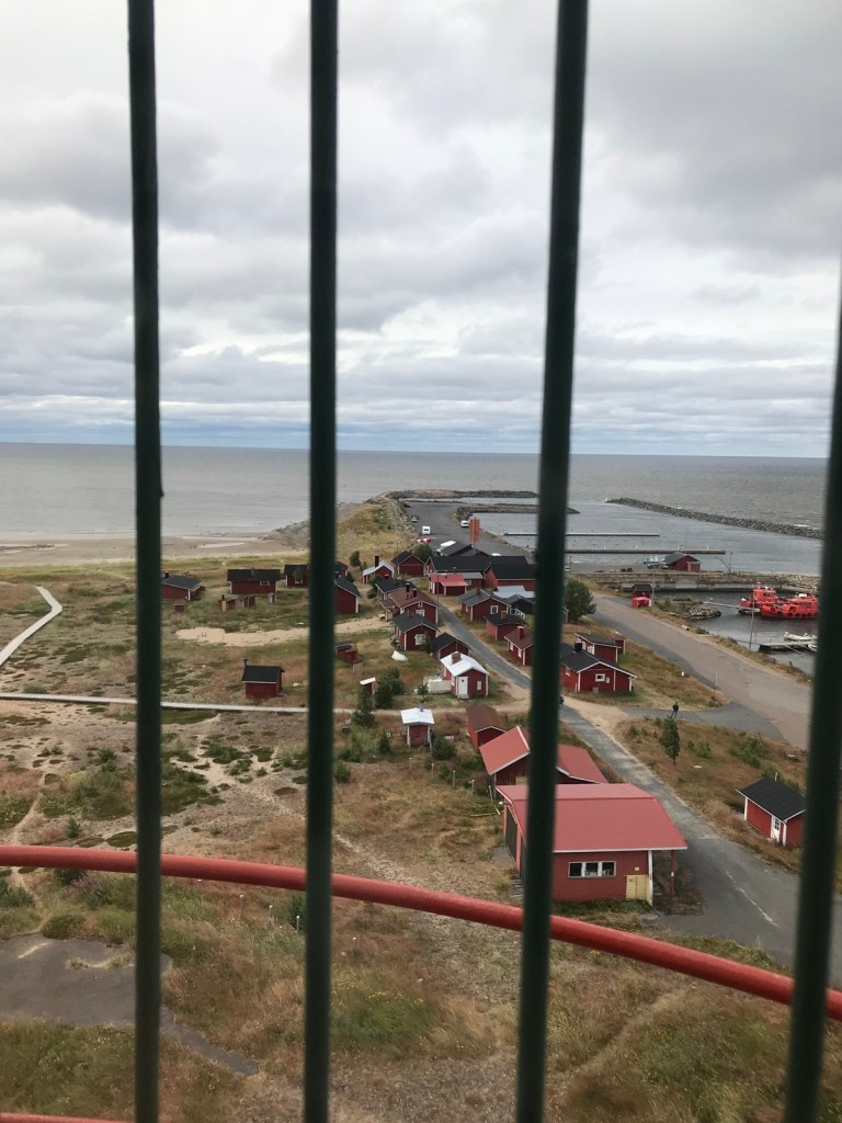 Den obligatoriska guiden läser pliktskyldigt de tekniska och historiska detaljerna om fyren från ett papper, men sedan är ordet fritt och vi talar bl.a. om det faktum att det är bara 1-2m djupt ända till närmare 2 km utanför Marjaniemi. Fyren fyller alltså en funktion..