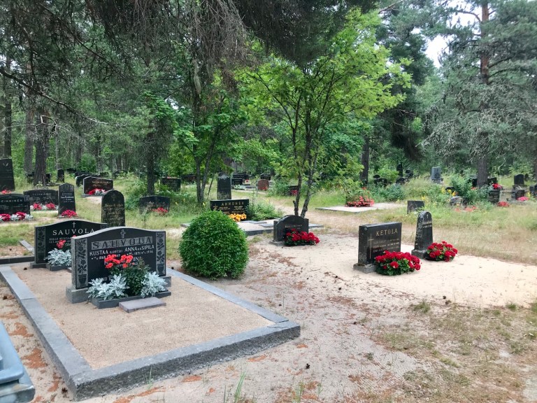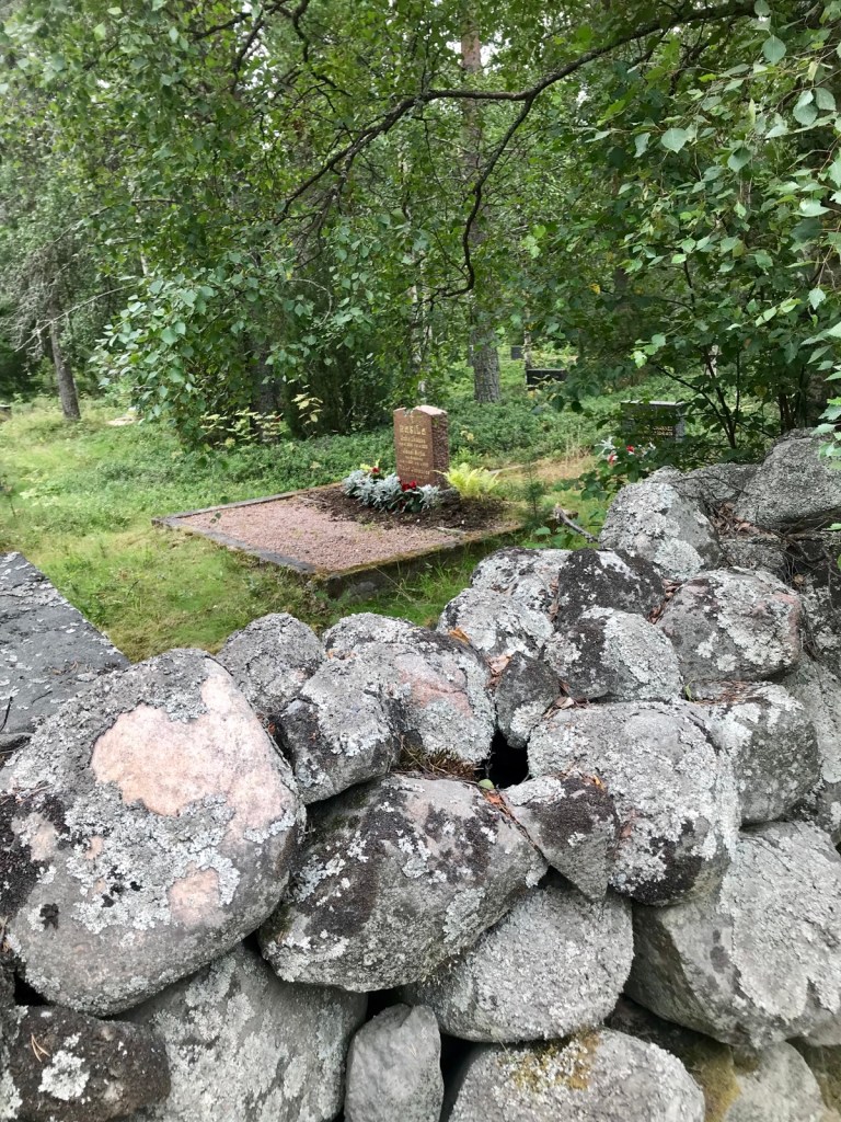 Begravningsplatsen är både igenvuxen och, när det gäller enskilda gravar, välskött.