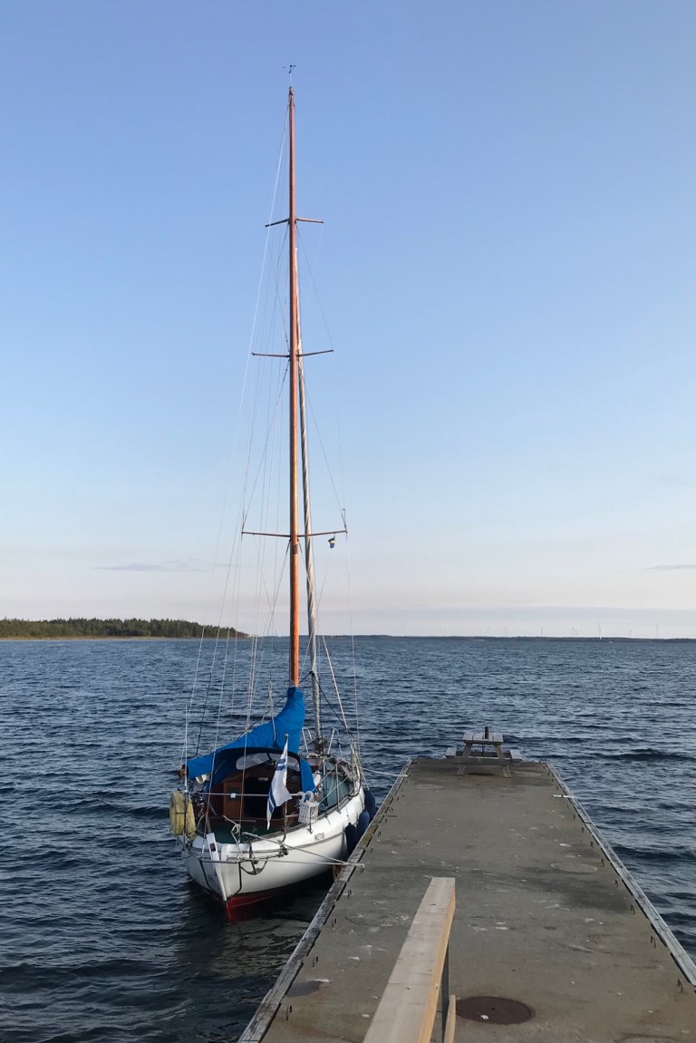 Jag fortsätter alltså till det ställe jag först haft som mål. Klockan 19.30 lägger jag till vid Vargöns brygga. Med sidan till. Här finns ingen annan. Vinden ligger på till en början, men dör så småningom ut.