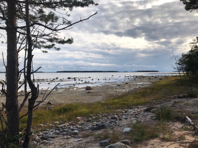 På morgonen efter frukosten går jag till andra ändan av ön.