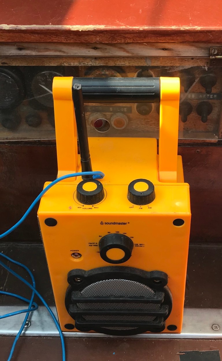 Den gamla radioapparaten som jag tänkte slänga har kommit till heders igen. Ute på havet fås inte kontakt via mobilnätet, men de hederliga radiovågorna är alltid att lita på! Det blir mest P2 som sänder klassisk musik förutom några inslag på främmande språk som finska och samiska.