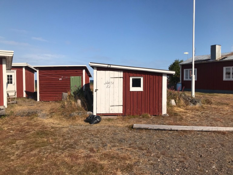 Efter att jag gjort båten i ordning går jag att bekanta mig med stället. När jag kom såg jag folk stimma överallt, på grillplatsen, på gårdarna. Men när jag kommer är det tomt överallt. Inte en käft syns till.