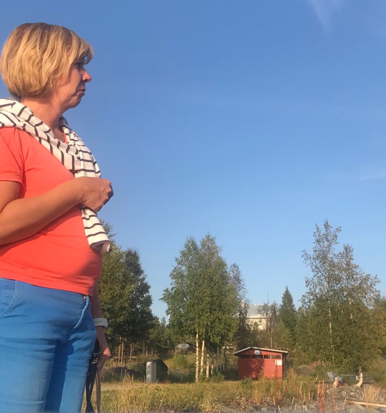 Vi går fram och presenterar oss, och har en givande pratstund. Hon kommer ännu ett varv senare på kvällen medan vi sitter på bryggan och intar förfriskningar. Trevligt!