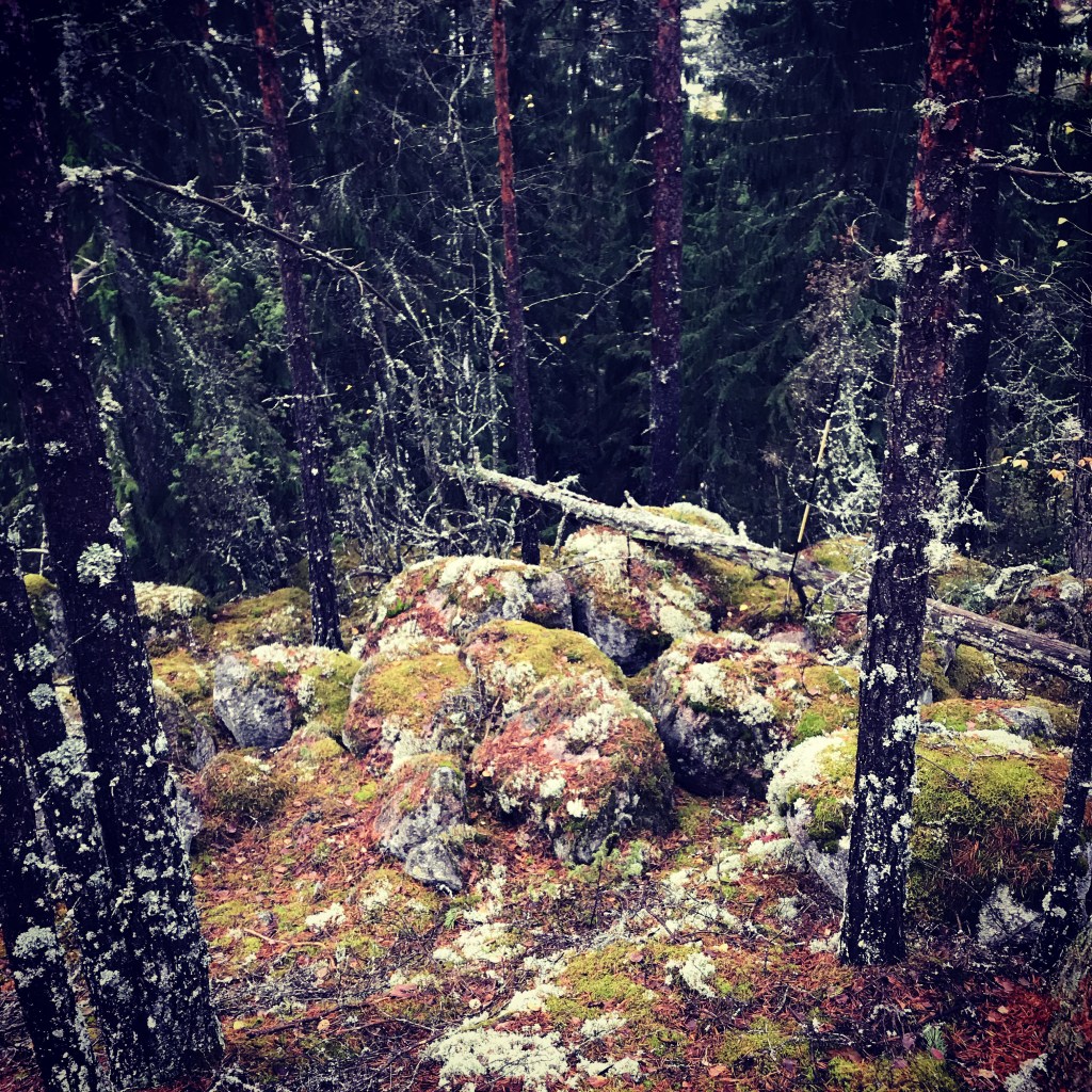 Ute i den höstliga skogen mellan Pirttibacka och Solvalla, av och an med hjälp av stavar tillsammans med Petski. Glada att vi i denna ålder ännu förmår oss tillryggalägga denna sträcka raskt gående eller joggande. Låt vara att benen är obrukbara under två därpåföljande dygn.