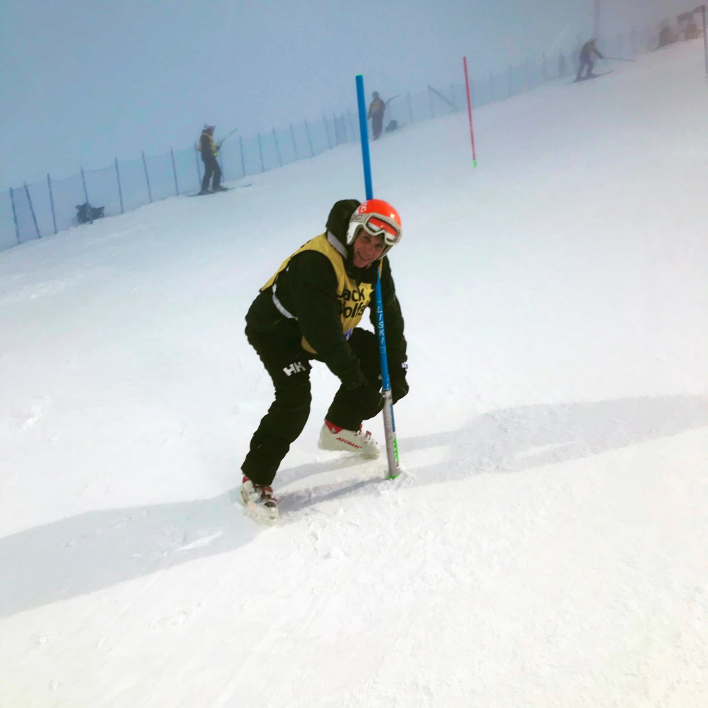 Vi hade alltså var vår käpp att hålla reda på. Putsa och feja. Kratta spåret fritt från snö, jobbigt i synnerhet under söndagen då männen åkte. Det snöade då. Vi hejade på Dave Ryding från England som låg andra efter det första åket, men tyvärr åkte ut i det andra. Vann gjorde Henrik Kristoffersen fra Norge. Clement Noel från Frankrike som ledde efter det första åket fick nöja sig med en andra plats.