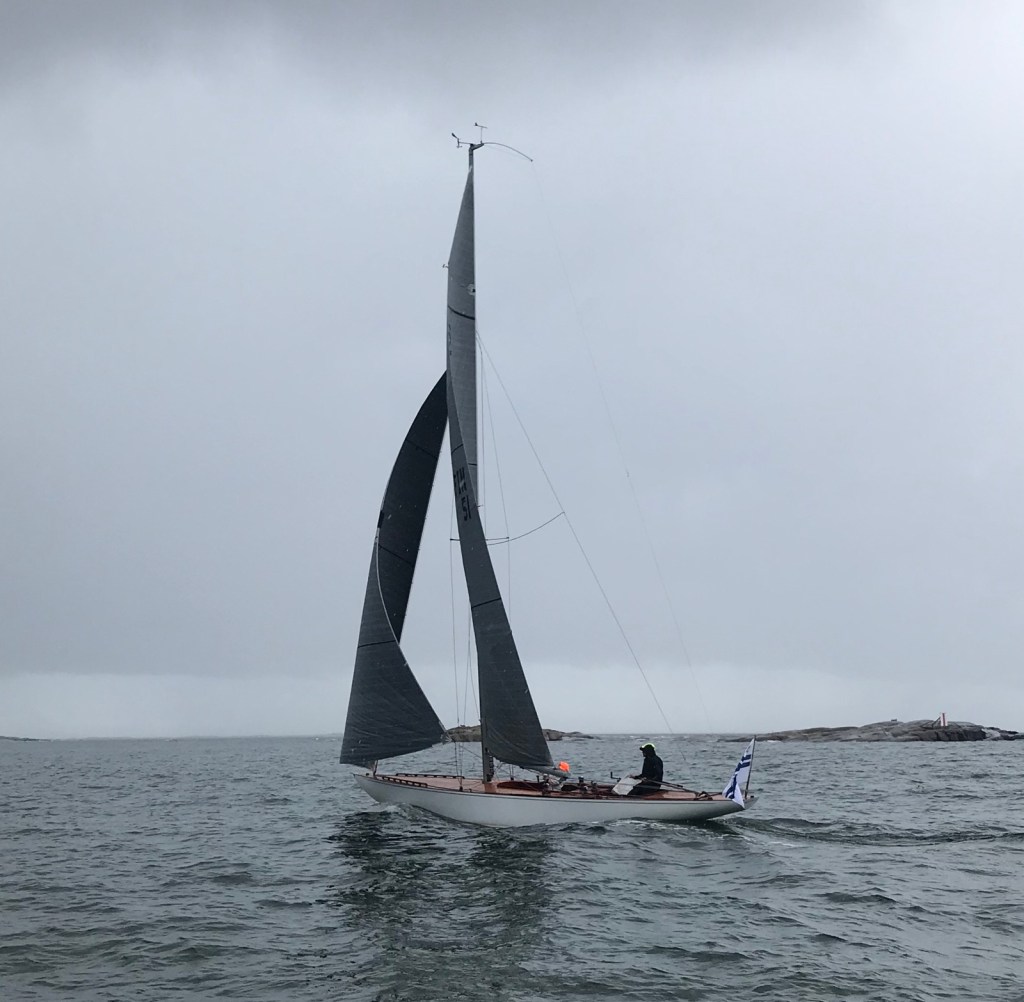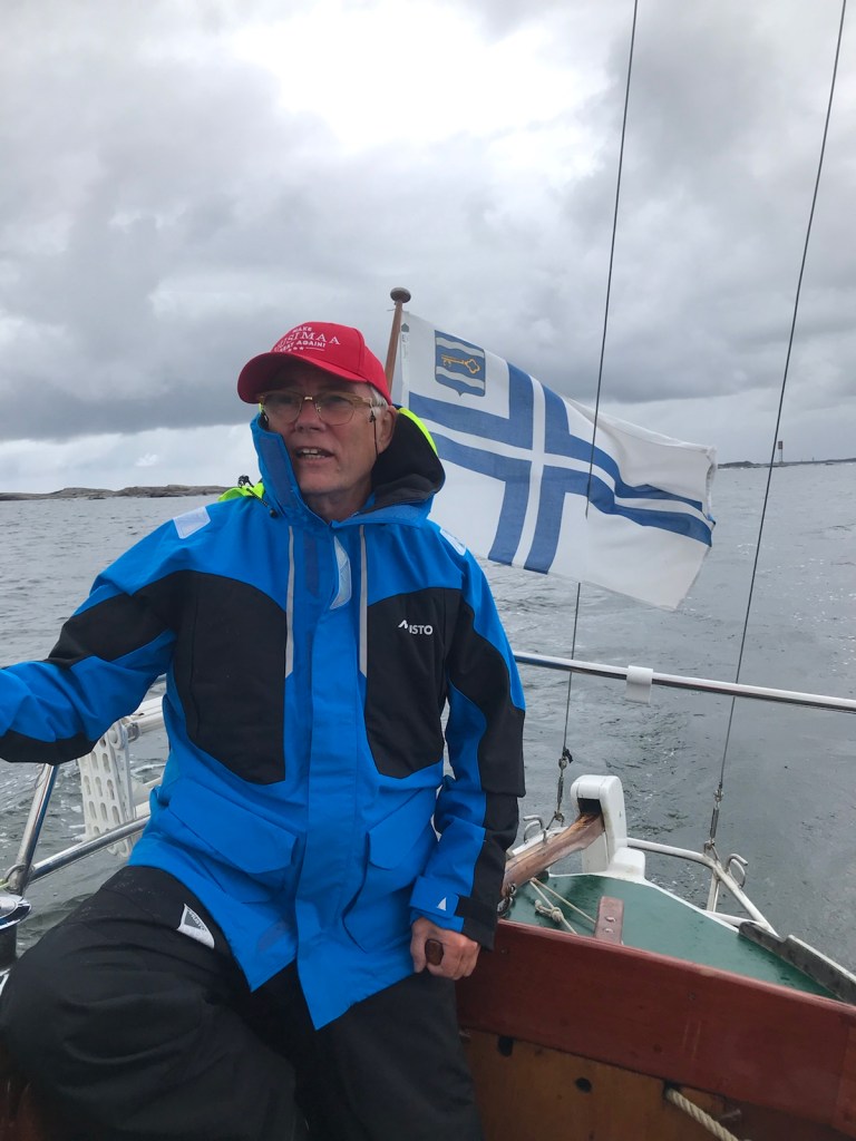 Vi seglar ut på Barösundsfjärden och efter Fjärdgrund får vi plattläns. Då genuan inte kan besluta sig på vilken sida den vill vara rullar vi in den. Farten bara ökar trots det och 8 knop överskrids. Det blir en våghalsig färd mot faret till Kantvik. I lä under Svinö tar vi ned storseglet och kör med motor till Hemvikshamnen. Vissa problem att lägga till vid den plats Johan anvisat uppstår. När vi förtöjt börjar regnet ösa ned.