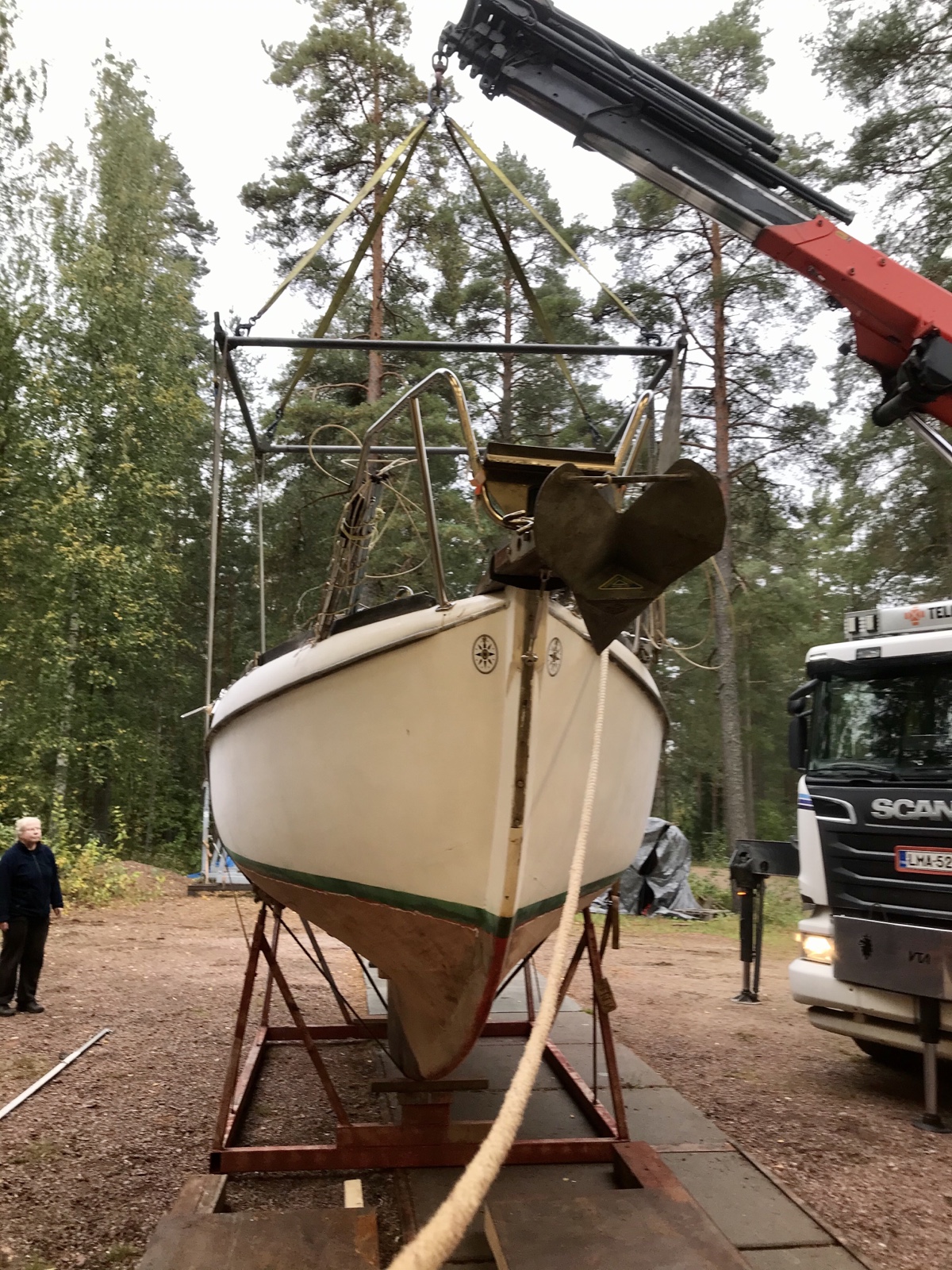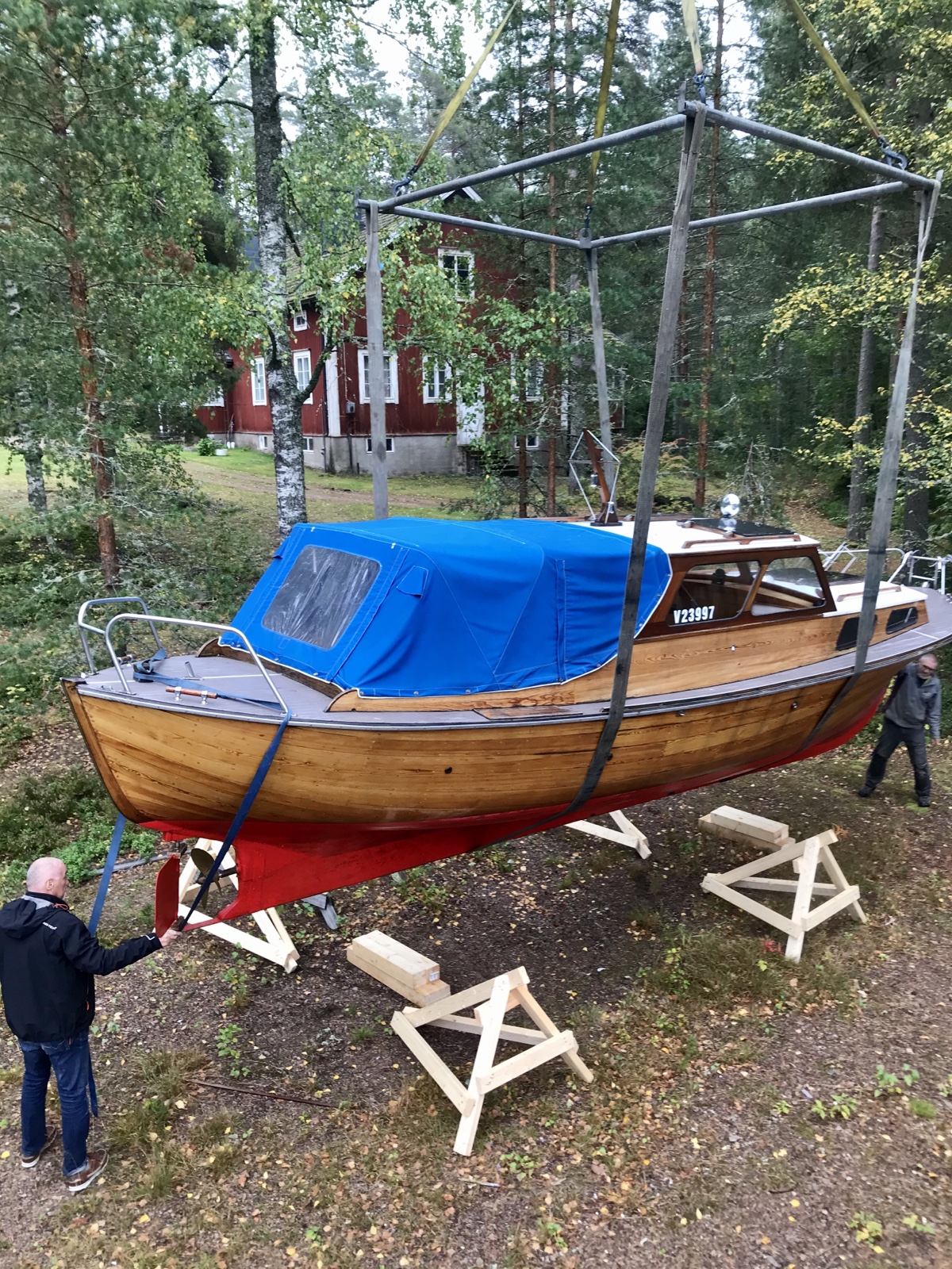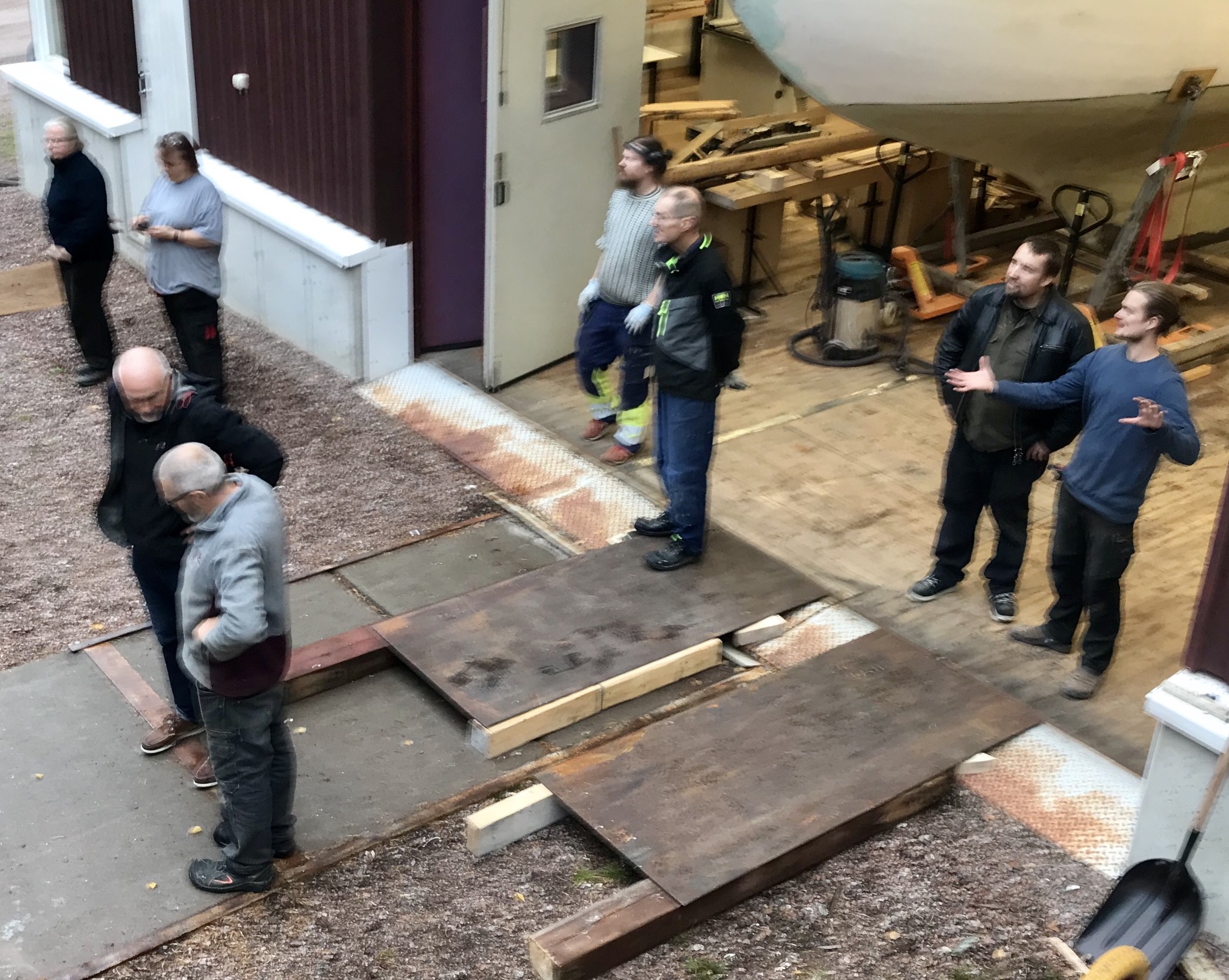 Ingmans transport hämtar en motorbåt och åtar sig att lyfta Freja till båthallens port.