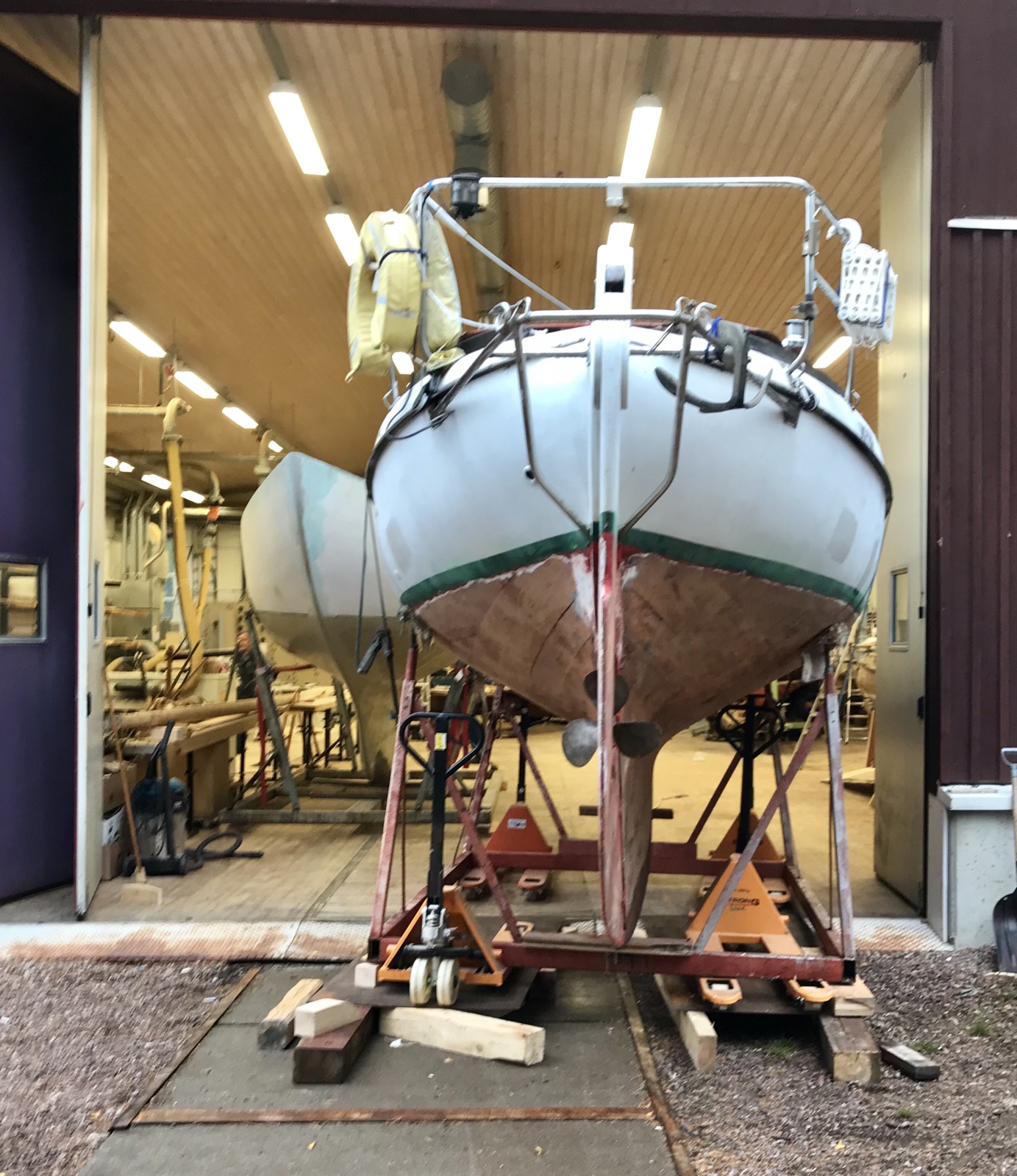 Ytan blir slät och ren. Svårt att tro att det är en båt som snart fyller 60! När man skådar midskepps och i fören. Akteröver ser det besvärligare ut: