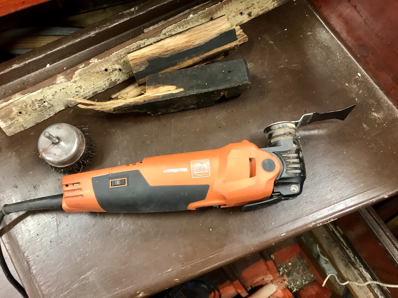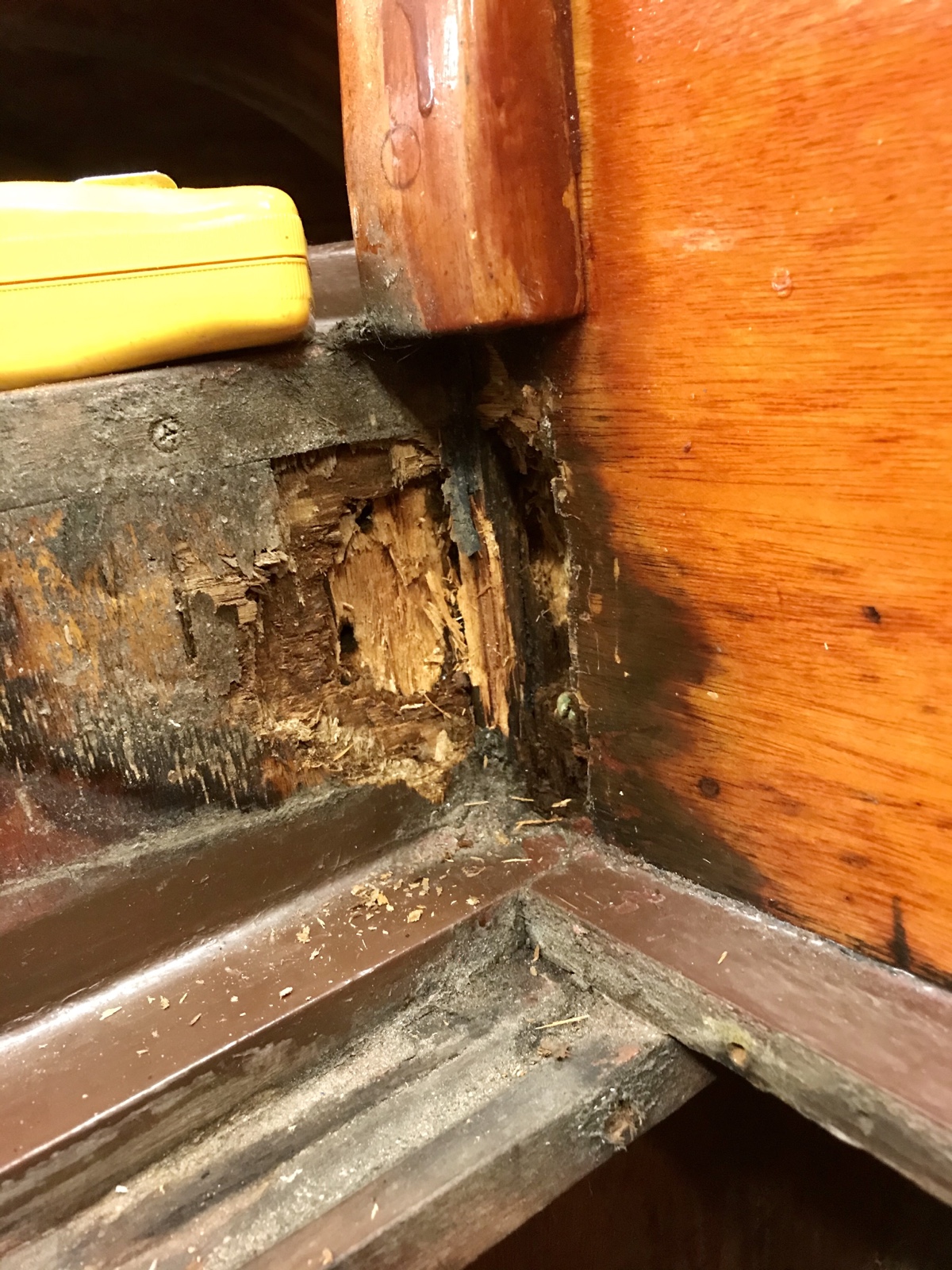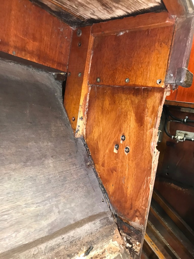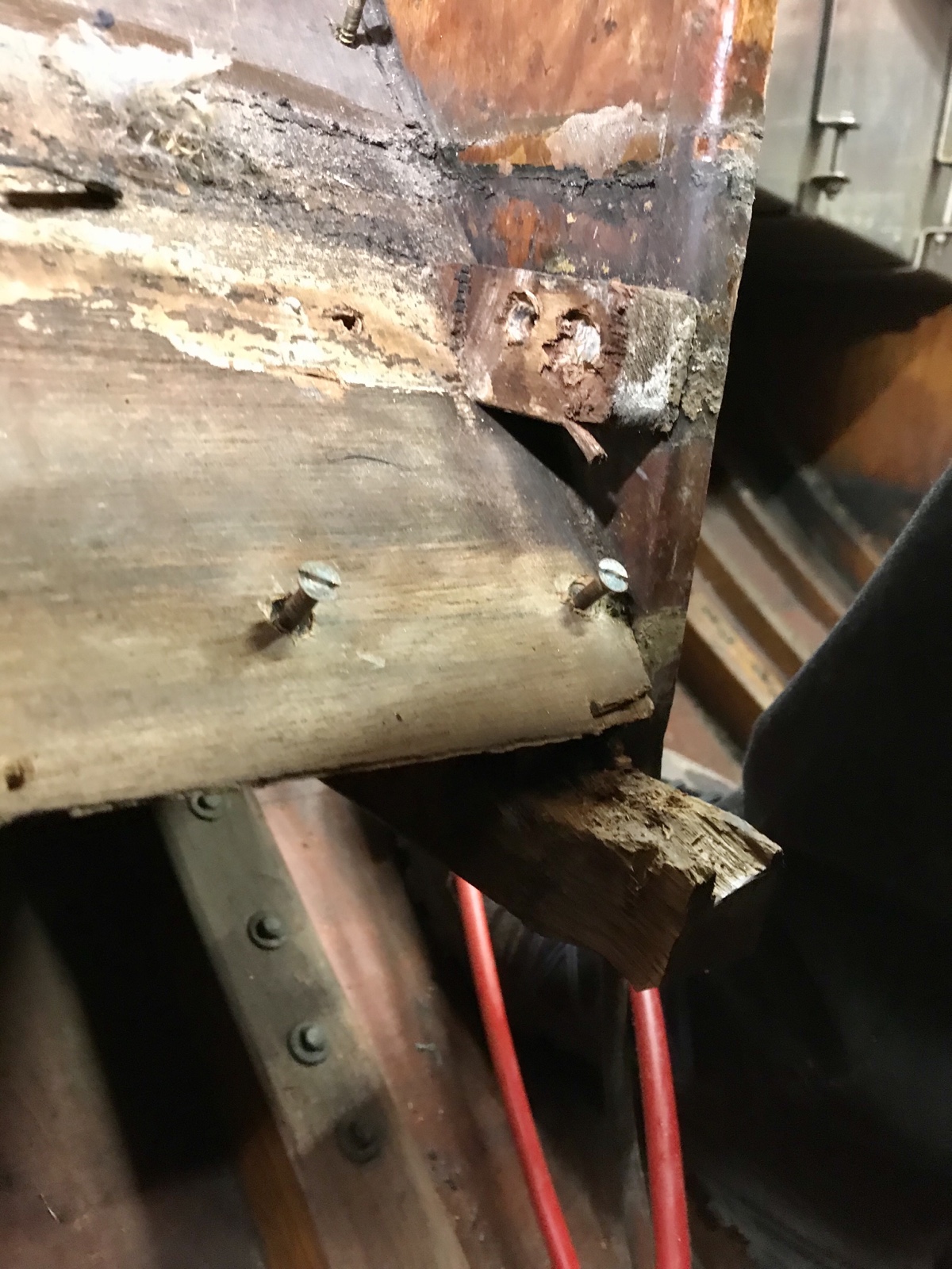 Men då dessa skulle anbringas uppdagades mera murket. Skruvar lossas. Resten sparas till morgondagen.