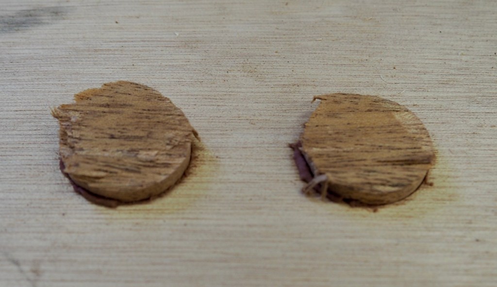 Det händer att man borrar onödiga hål. Eller i detta fall, hålen kopierades från den kasserade skivan, men deras funktion är höljd i dunkel. De får då proppas igen. Det är som sagt tidigare inte lätt att rekonstruera det som varit. Det finns delar vars placering inte ännu har kunnat utrönas.