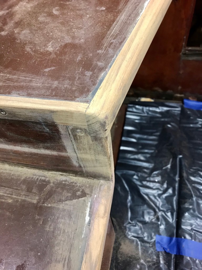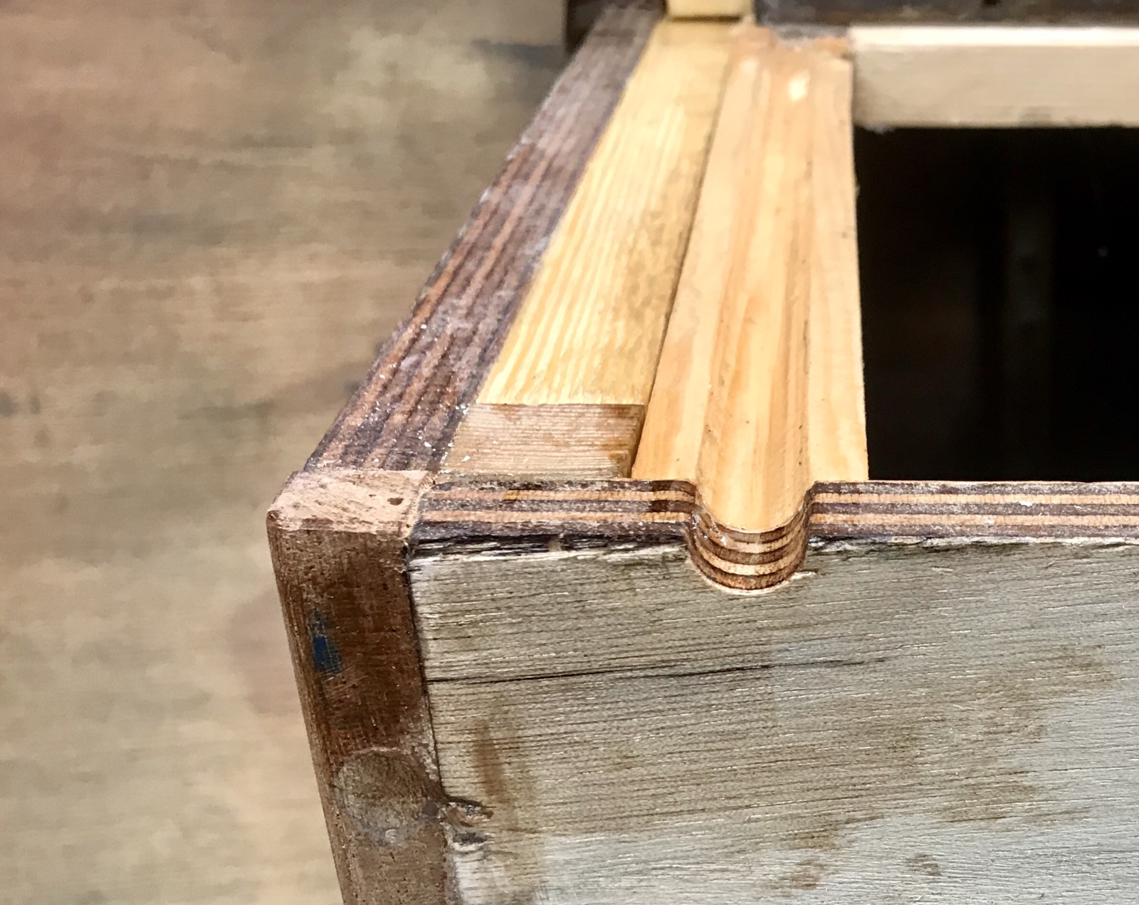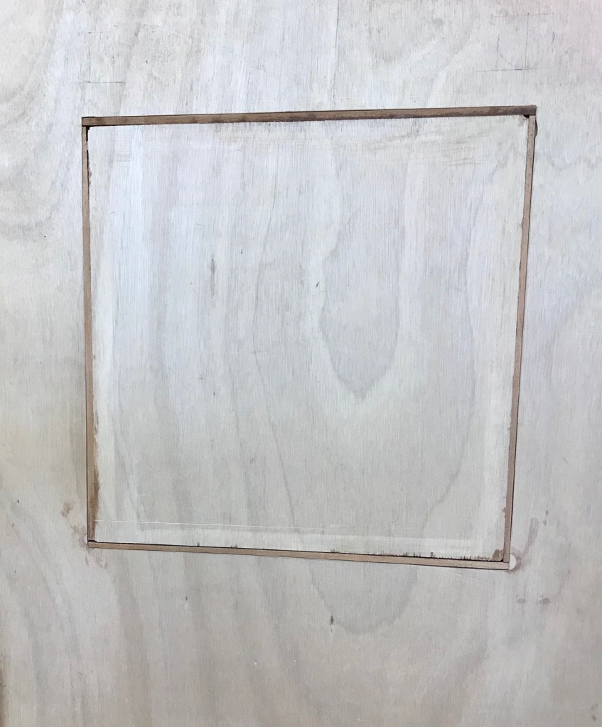 Härefter inleds arbetet med luckan som kommer för hålet i durken. Mahognylister limmas runt omkring.