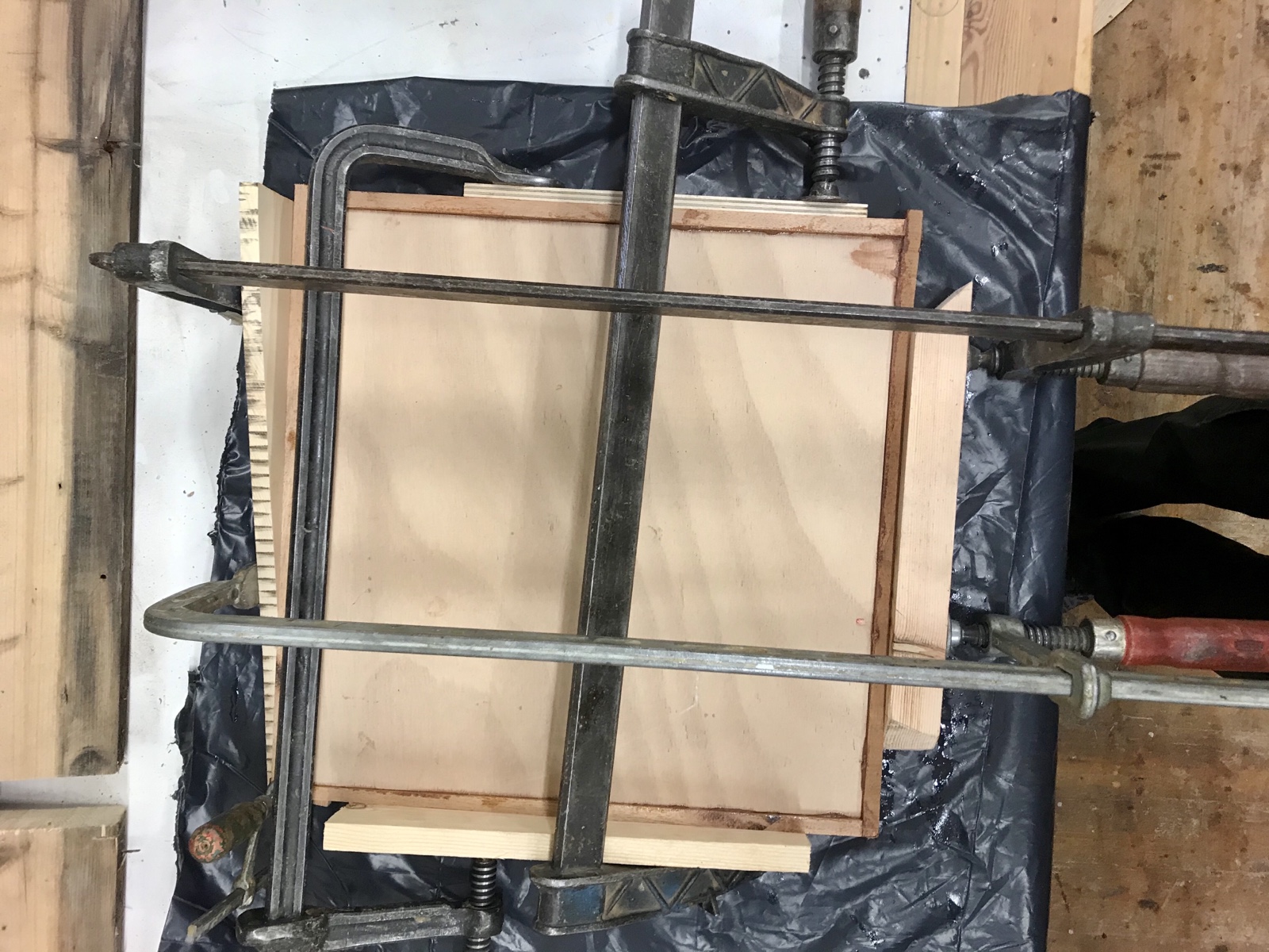 Vissa svårigheter med att få skruvtvingarna på plats uppkommer, men Eero hjälper.