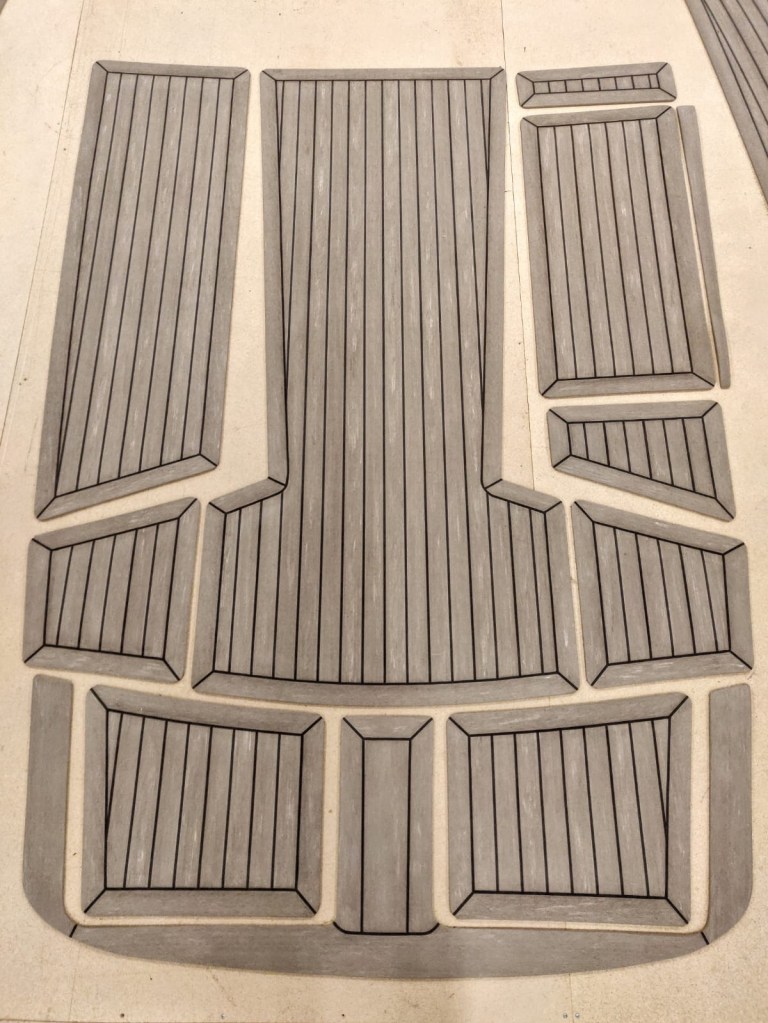 Today is a new day. Cutting and putting the teak planks right on the plywood which will be the cockpit floor.