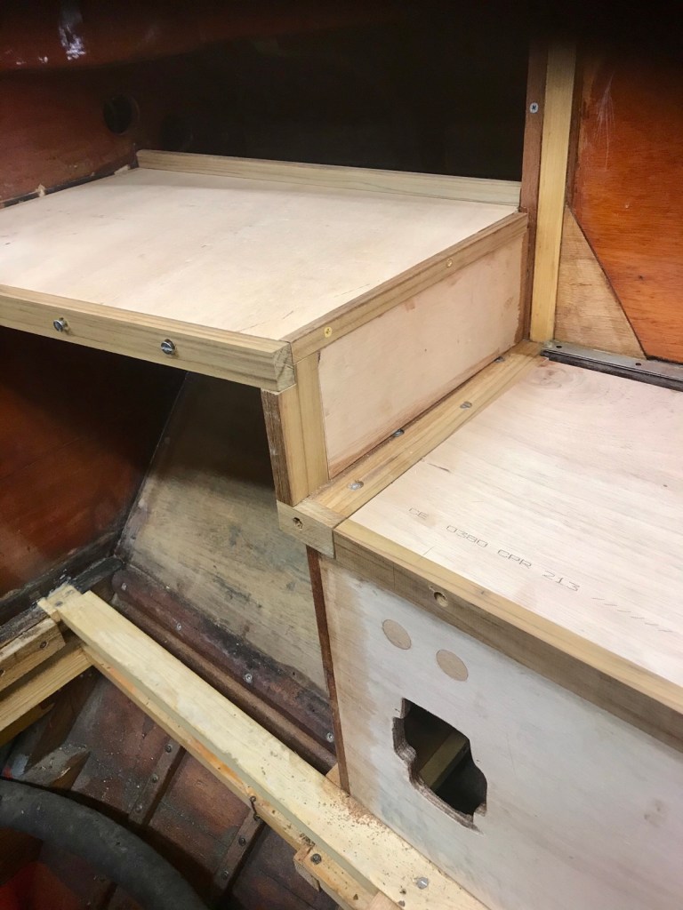 Friday is a shorter day, it’s time to drive home after lunch. There is time to trim the thwarts and see what they look like in the cock-pit.