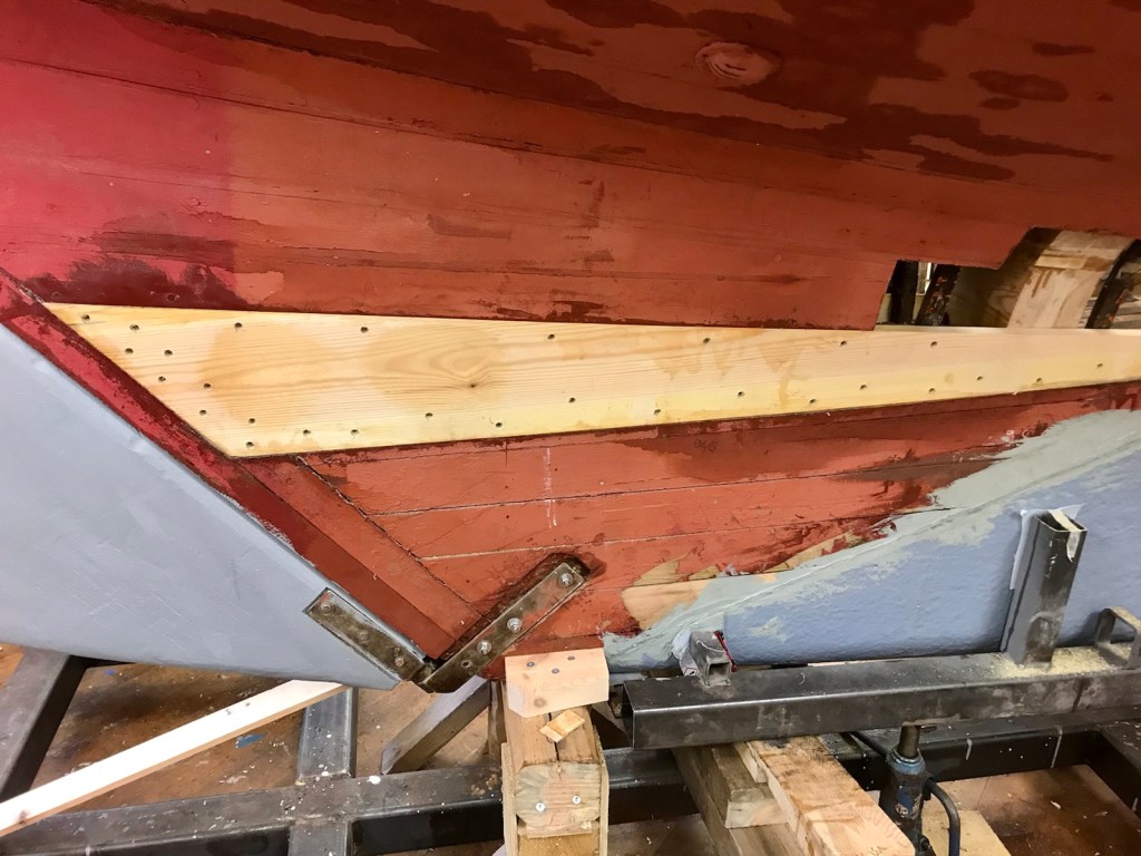 Diagonalskarven får fräsas. Efter det torde babords sida vara klar. Nästa vecka står styrbords sida i tur.