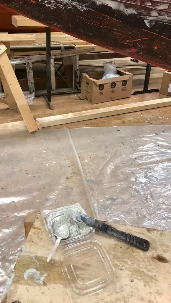 Medan limmet torkar eftertraktas andra sysslor. Eero ger rådet att täta nåt som inte limmats med kritkitt. Alltså krita blandat med linolja. Till verket alltså!