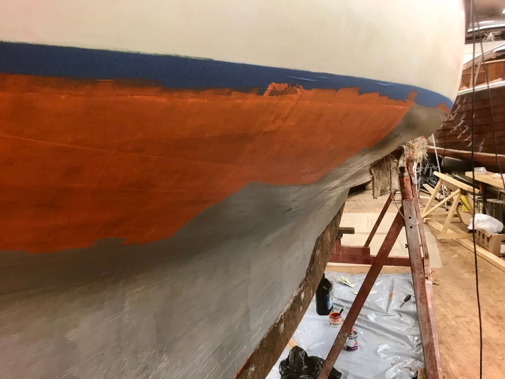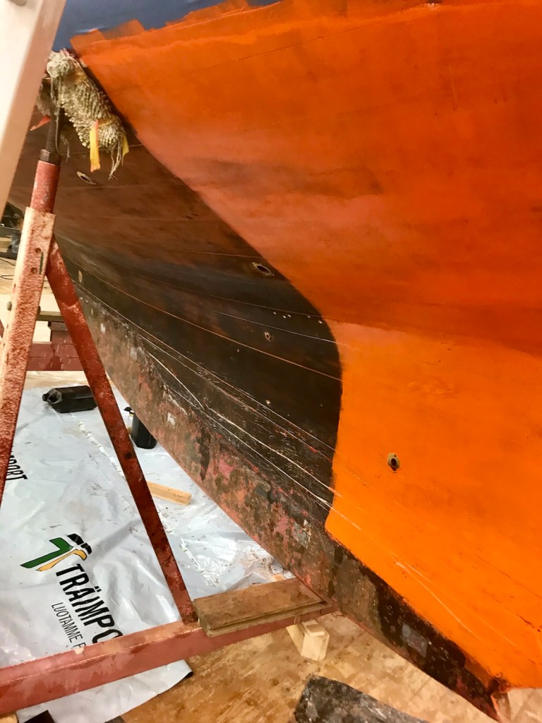 För övrigt appliceras Sikaflex på ställen som fått för lite eller inget alls, rodret beskådas och slipas lite till och till slut penslas blymönja i kölsvinets främre del.