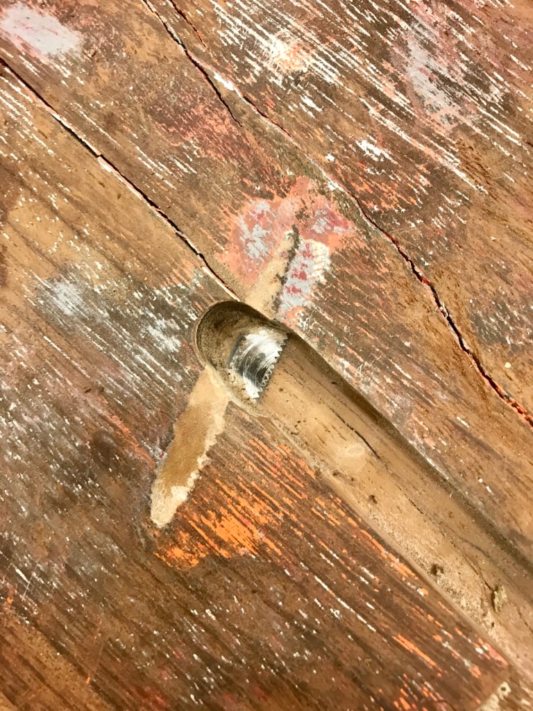 En tjockare och bredare planka blir bättre, men nu träffas en metallskruv och bettet går sönder.