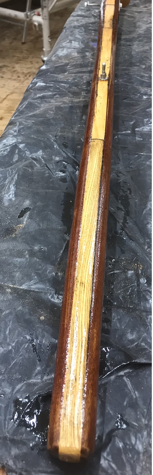 Den andra sidan av roderbladet slipas. Såväl roderblad som -kult oljas in.