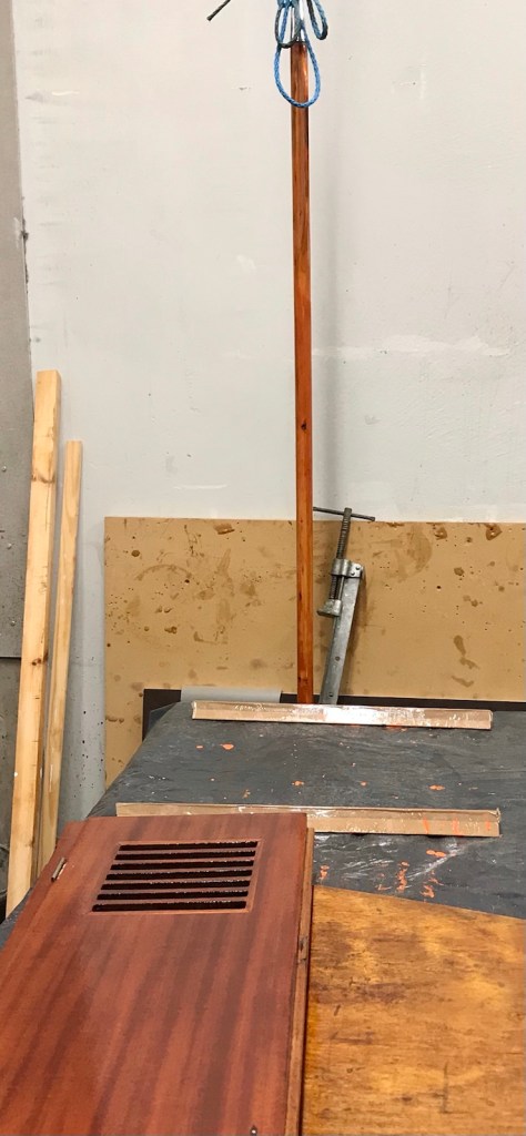 Den fläckigt skamfilade åran betsas med mahognybets för att nödtorftigt dölja det mörka.
