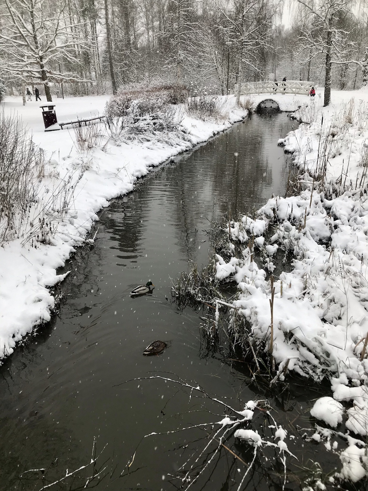 Äntligen snö! Hoppas bara att det inte kommer så mycket att det skulle äventyra flytten av Freja till Sjundeå.
