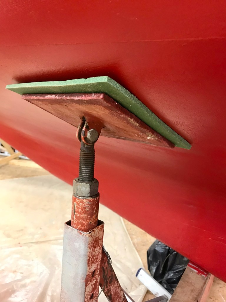 Ett liggunderlaget från Motonet klipps i bitar och limmas på bockens bärarskivor med Sikaflex. Får se hur länge det håller..