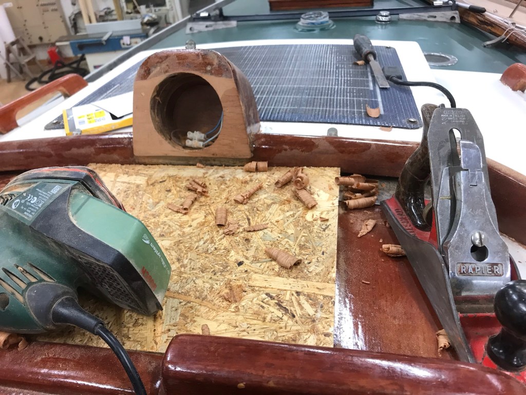 Fortsätter med kompasskonsolen, slipar och jämnar.