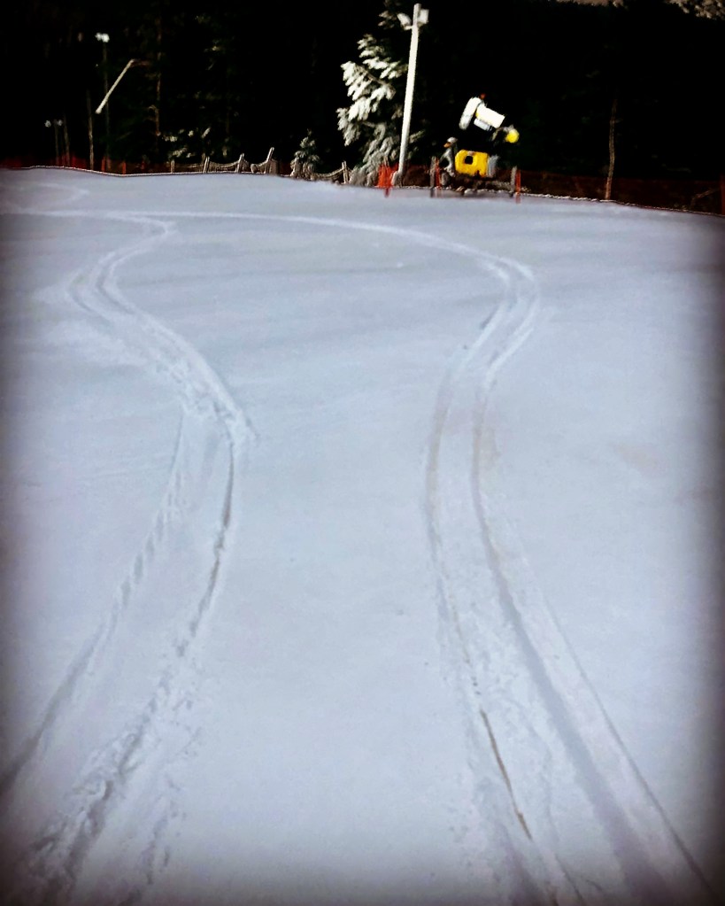 Fredag kl.12 öppnar backen, och då är där ganska tomt. Pensionärerna passar på att träna, bygger sig en bana med jämn rytm, inga figurer. Det känns fartfyllt men ser långsamt ut. Åtminstone då de betraktar varandra. En timmes effektiv träning är tillräckligt. Därefter hem att se damernas slalom på TV.