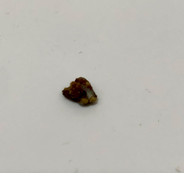 ..dimper den ned i wc-skålen, stenen som hade vållat så mycken smärta. Som ett gruskorn ser den ut.